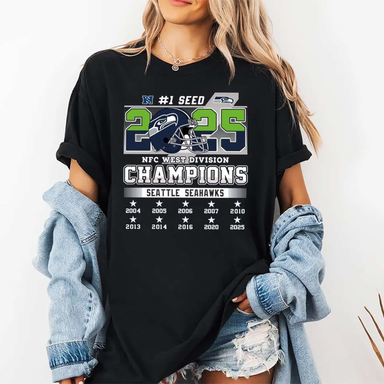 Owning this shirt is about reclaiming the throne. It connects you to the electric atmosphere of Lumen Field and the knowledge that the path to the Super Bowl now runs through Seattle. It serves as a wearable warning to the rest of the league: the Seahawks aren’t just in the playoffs; they are leading the pack. Don’t miss your chance to represent the top seed—secure your piece of history and order the “2025 Champions” shirt today!