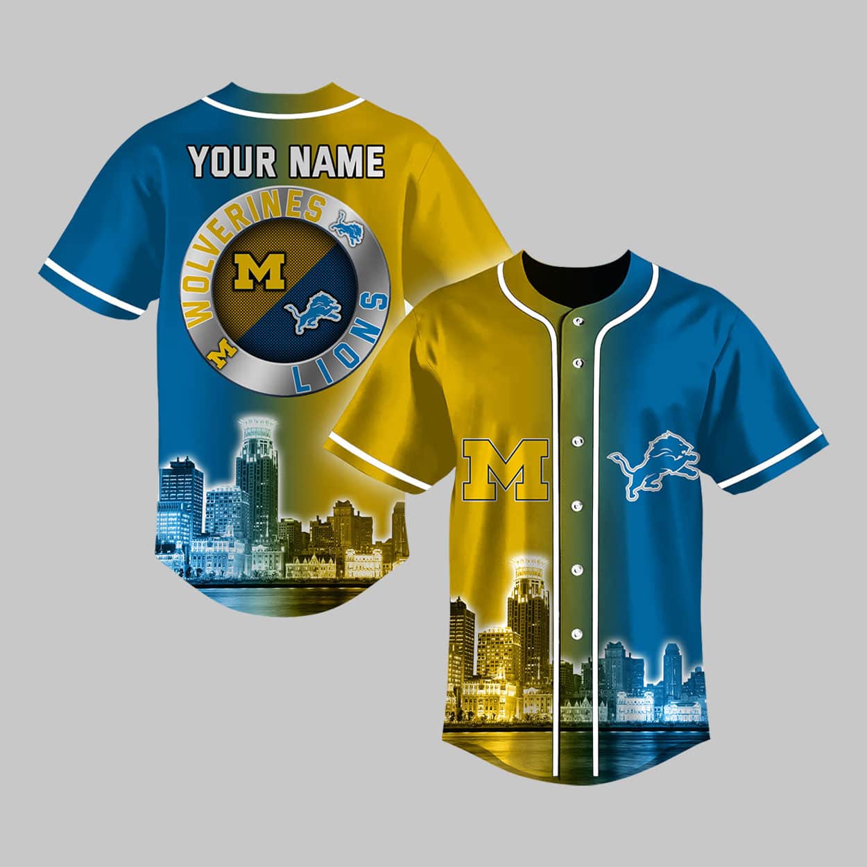 2025 Wolverines x Lions Skyline Baseball Jersey – Detroit Dual Fandom
