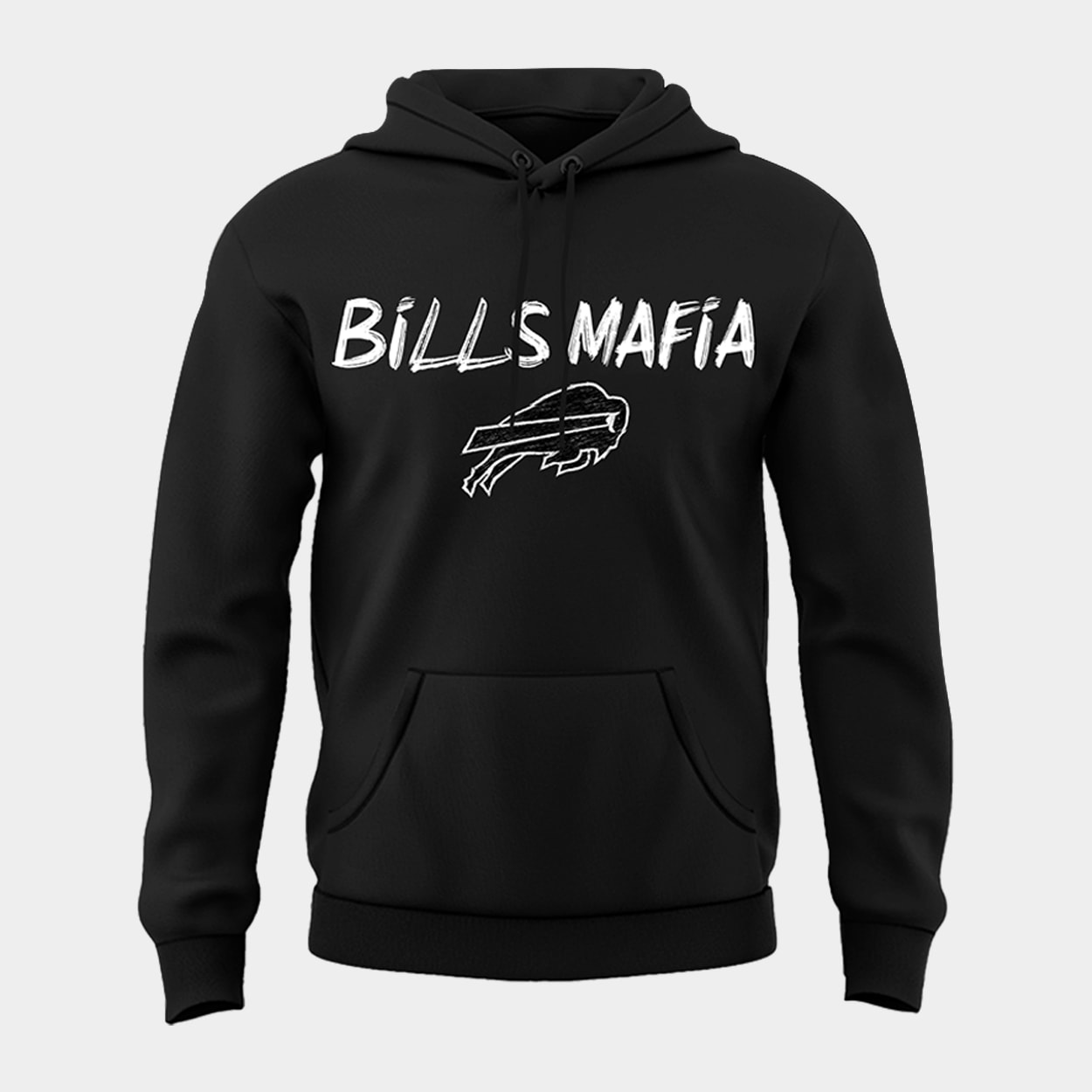 Unleash your inner Bills Mafia with the 2026 Bills Mafia Hoodie, a sleek pullover designed for die-hard fandom. The front boasts “Bills Mafia” in edgy white script alongside a Billls logo, while the back amplifies with “Buffalo Bills” text and a larger buffalo emblem for bold impact.