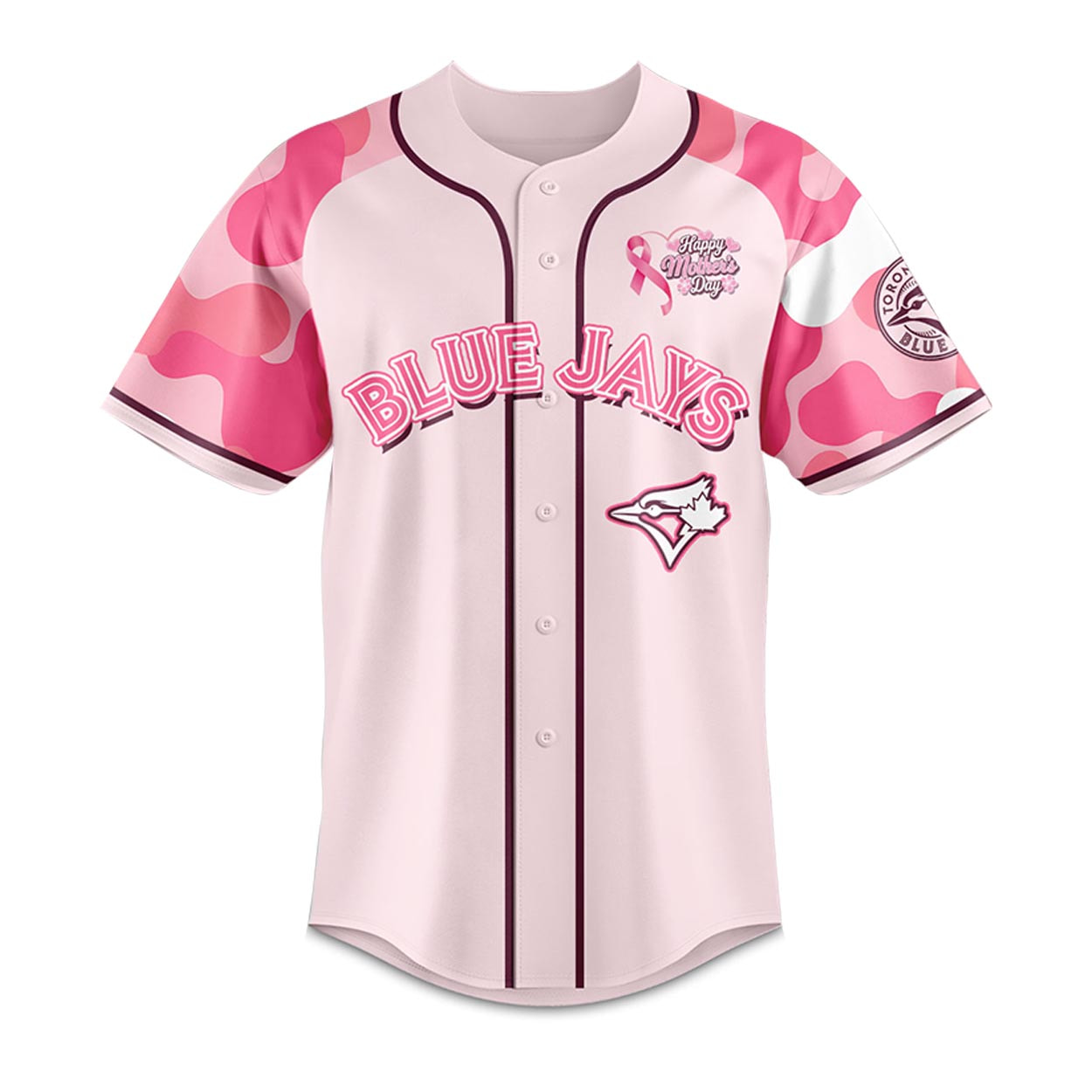 Celebrate mom with the 2026 Blue Jays Happy Mother’s Day Jersey! Featuring a camouflage sleeve pattern and an awareness ribbon, this custom apparel honors family and baseball. Order your personalized fan gear today!