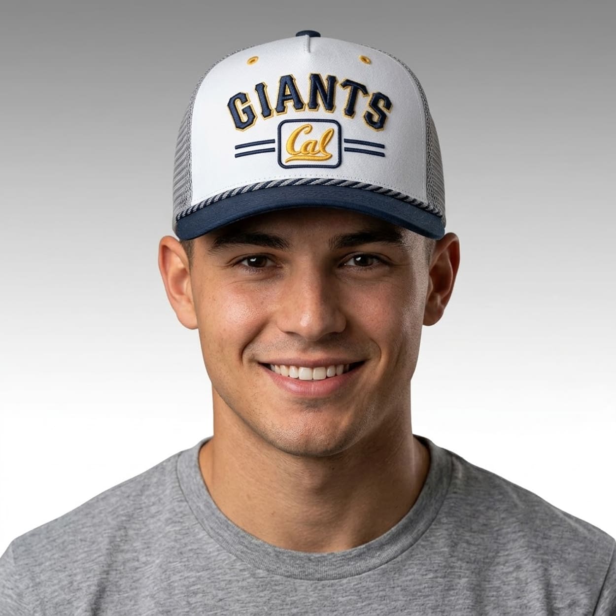 Make a clear statement of dual loyalty with the 2026 Giants Cal Night Roped Hat Giveaway. This cap features an arched “GIANTS” wordmark displayed prominently across the front crown. Below the team name, the iconic cursive “Cal” logo sits centered within a rounded rectangular border, flanked by horizontal lines. The design is finished with a classic rope detail resting across the visor base and traditional trucker-style rear panels, blending vintage stadium aesthetics with collegiate branding.