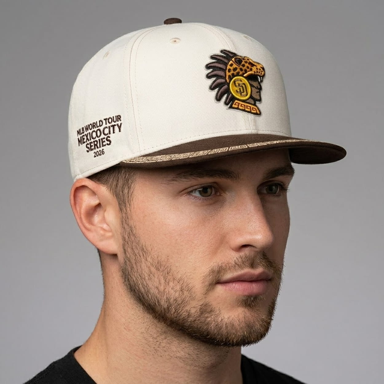 Celebrate the return of international baseball with the 2026 Padres Mexico City Hat! Featuring a stunning indigenous warrior graphic, a patterned brim, and a commemorative side patch, this cap is a true collector’s dream. Perfect for dedicated baseball fans. Order your exclusive sports apparel today and wear your global team pride!