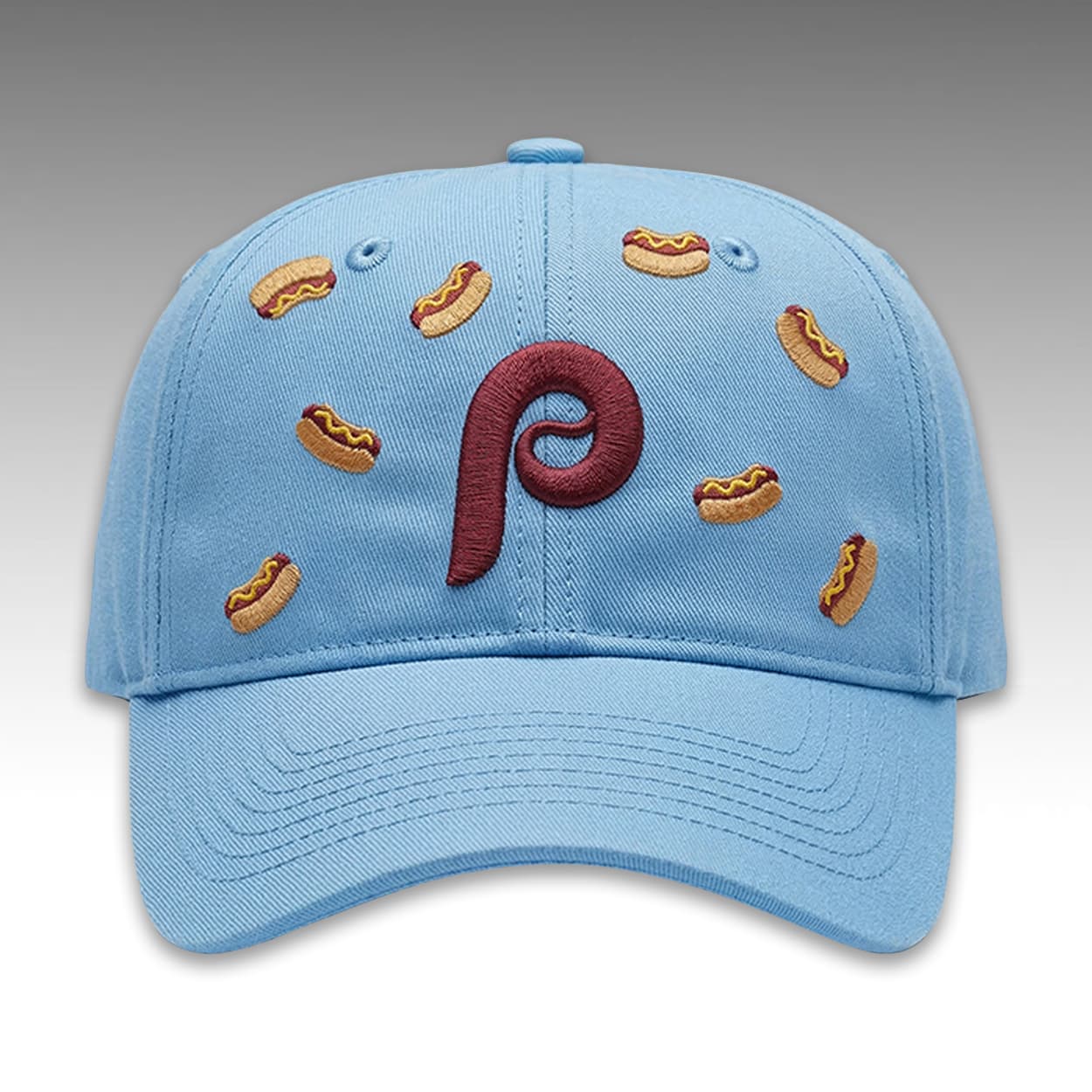 Culturally, this piece celebrates the beloved Philadelphia tradition of ballpark frank promotions and the highly anticipated Hatfield Phillies Franks BOGO Night at Citizens Bank Park. It perfectly encapsulates the city’s passionate baseball culture and the lighthearted, fun-loving atmosphere of a packed stadium event. This hat is targeted directly at energetic Phillies fans, novelty sports memorabilia collectors, and enthusiastic game-goers who want to visibly partake in one of the 2026 season’s most exciting theme nights.