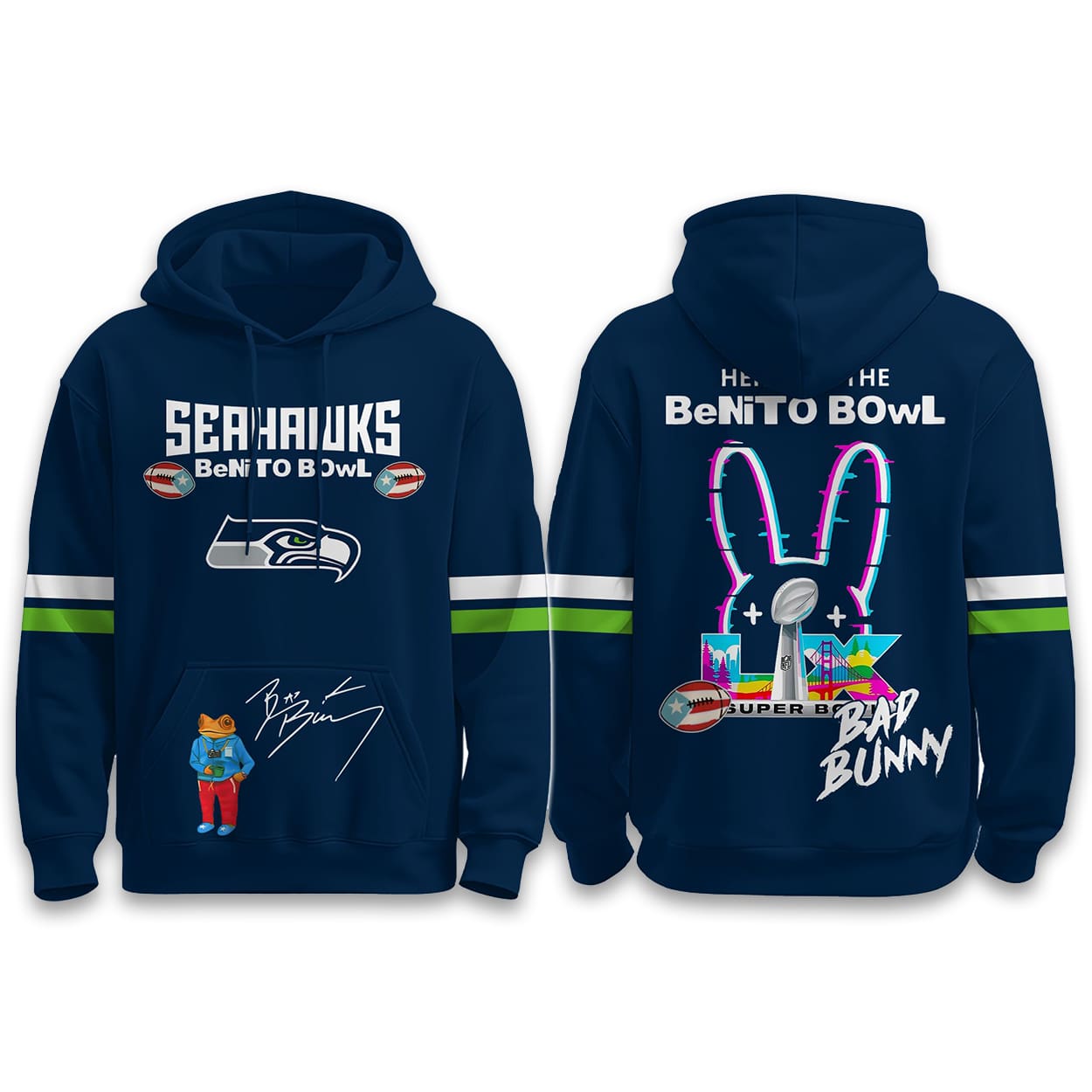 2026 Seahawks Bad Bunny Here For The Benito Bowl Hoodie – Super Bowl LX Crossover Gear