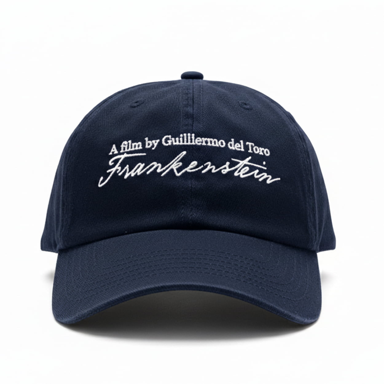 Celebrate the upcoming 2025 film with this A Film By Guillermo Del Toro Frankenstein Hat. This cap features the movie’s logo in elegant, white embroidery. It’s the perfect, stylish, and minimalist apparel for any cinephile, horror fan, or admirer of the legendary director’s work.