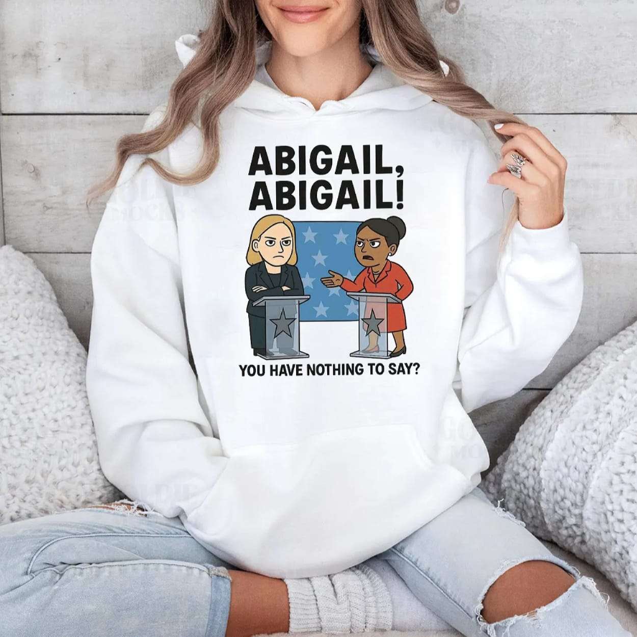 This shirt captures a pivotal moment from the 2025 Virginia gubernatorial debate, where Winsome Earle-Sears confronted Abigail Spanberger with the now-viral line: “Abigail, Abigail! You have nothing to say?”—a phrase that sparked national conversation.