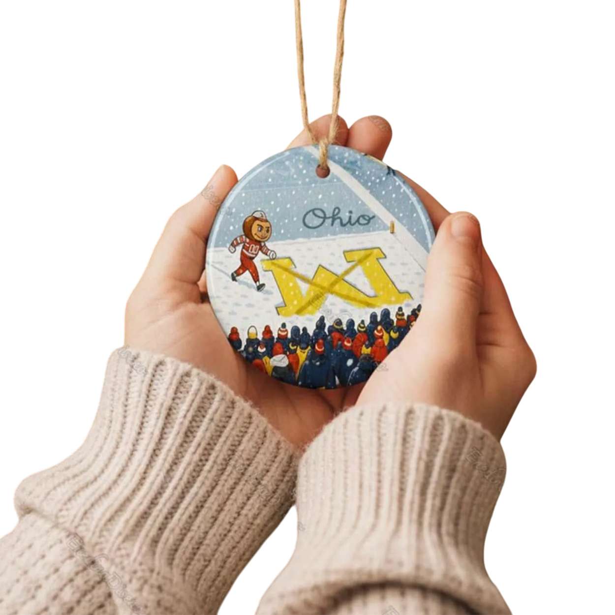 This ornament pays homage to “The Game,” the storied clash between Ohio State and Michigan. Known for its intensity and national impact, this rivalry has shaped college football history and inspired generations of fans across the Midwest and beyond.