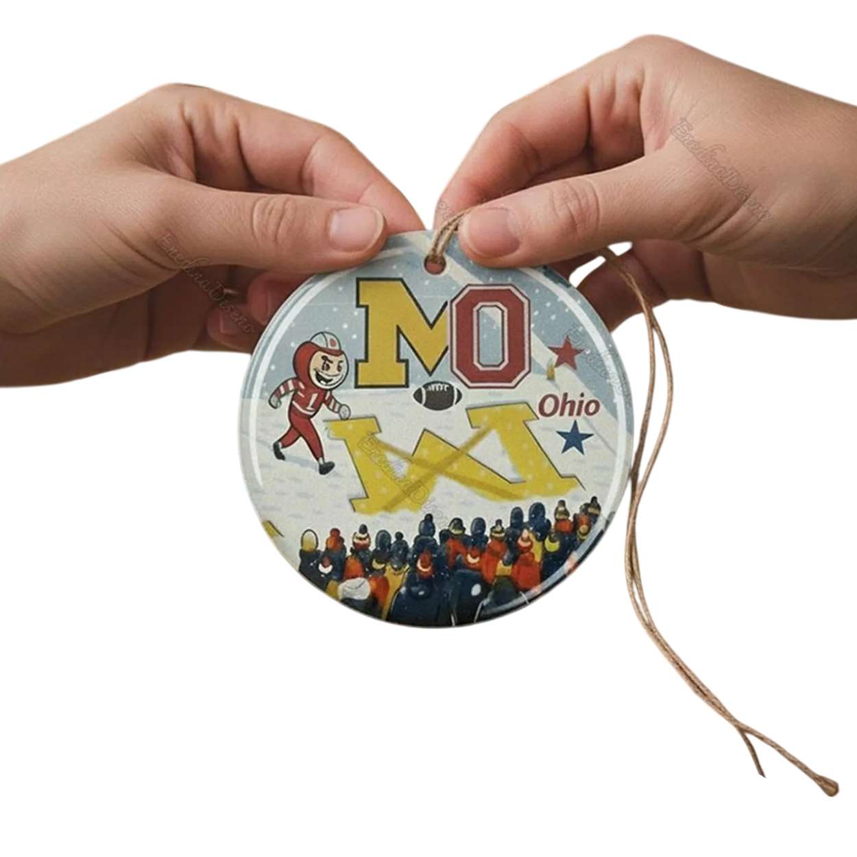 Capture the fierce rivalry between Ohio State and Michigan with the Brutus Ohio Vs Michigan Snow Erase The M Ornament. Featuring Brutus in action, this collectible honors decades of football tradition and snowy showdowns that define college sports passion.