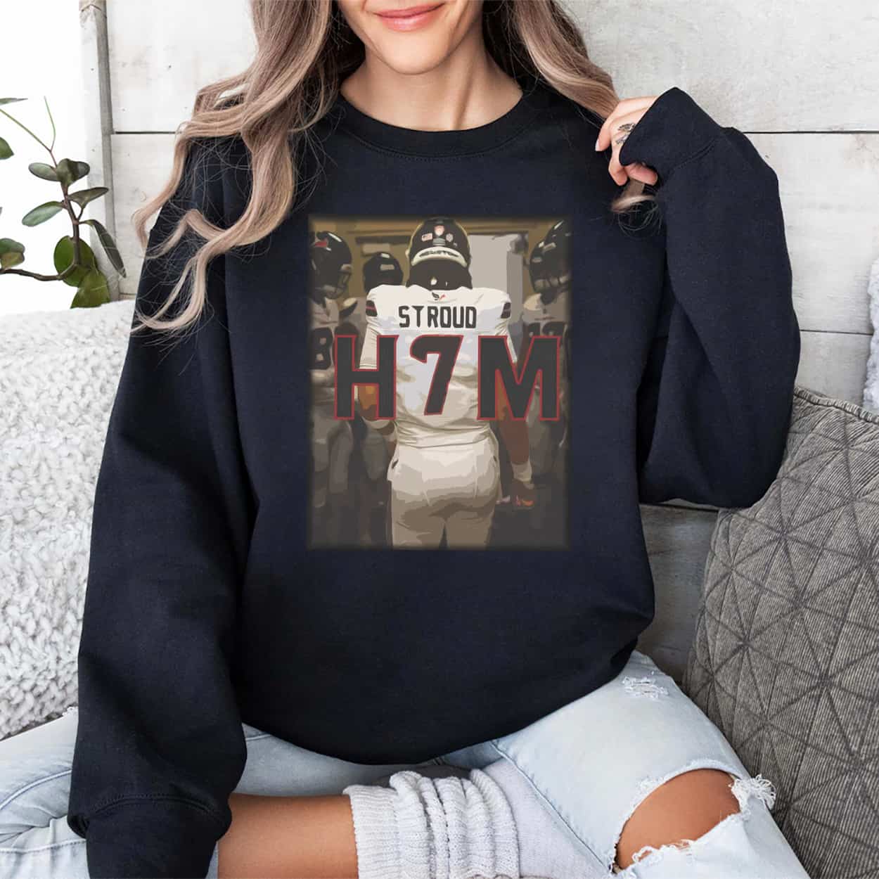Wearing this shirt allows you to symbolically walk with the team, channeling the confidence and calm intensity of the quarterback as he leads his squad. It’s a comfortable, high-quality garment that serves as a bold, stylish statement of your unwavering loyalty to Stroud and the Texans’ pursuit of a Super Bowl title. Don’t miss your chance to own the shirt that captures the hype—order your CJ Stroud “H7M” tee today!