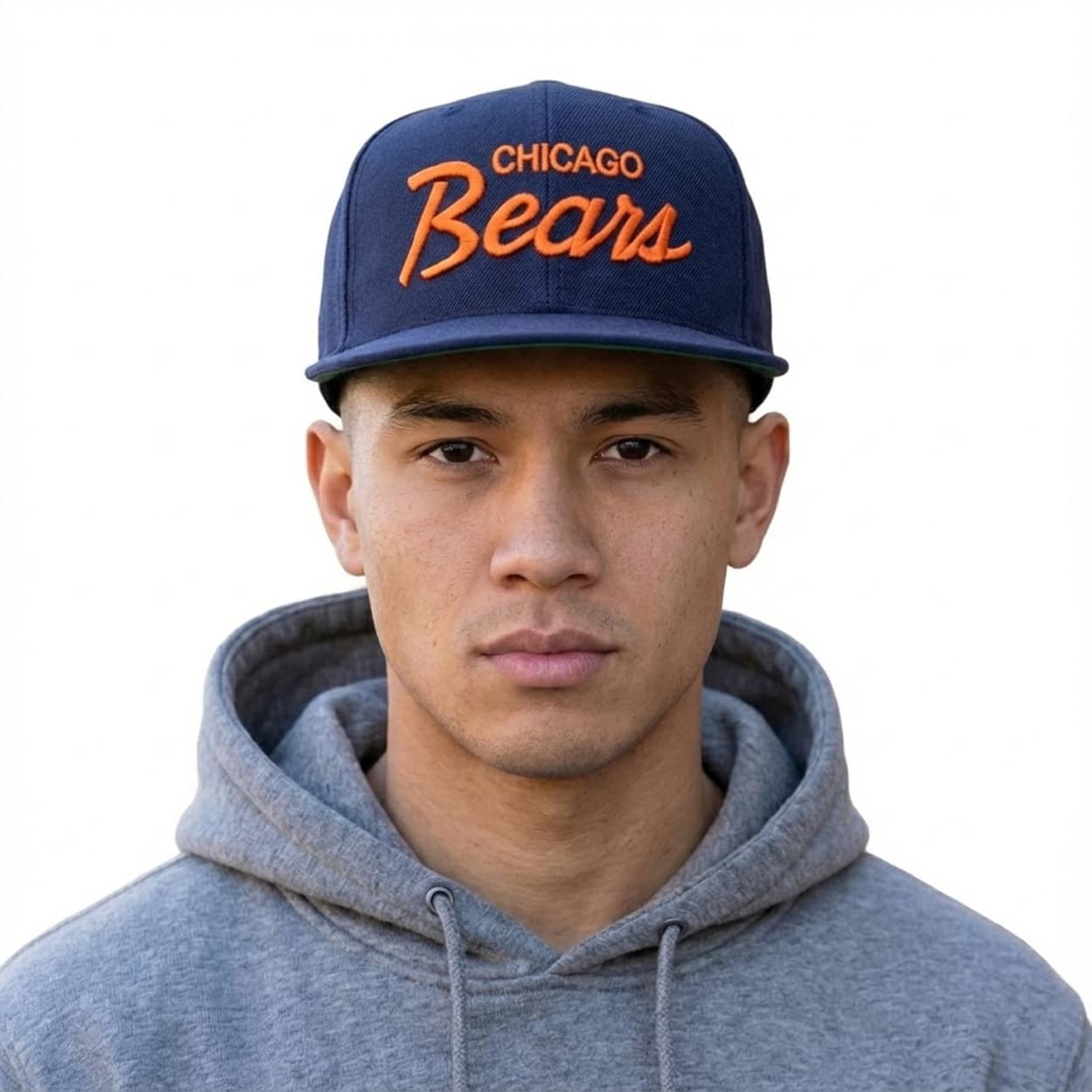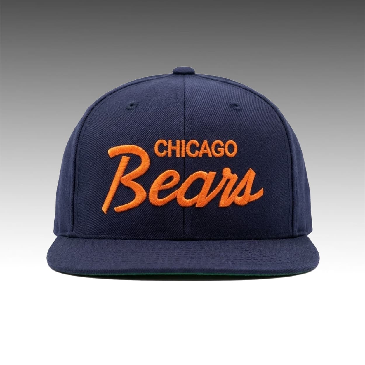 Relive the magic of the holidays with this Clark Griswold Bears Hat. The hat features a high-quality, structured navy blue crown made from durable wool-blend fabric, perfectly mimicking the vintage sportswear of the late 1980s. The front panel displays the team’s identity in striking orange embroidery: the word “CHICAGO” in bold, sans-serif block letters arched above a classic “Bears” cursive script.
