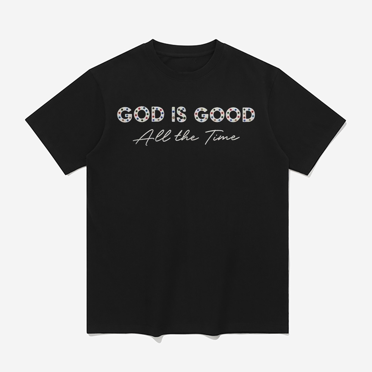 This hoodie is the perfect way to share a positive message while supporting your favorite team. The design features the phrase “GOD IS GOOD” in a clean, bold font. This is elegantly paired with the finishing phrase, “All the Time,” written in a flowing script underneath, creating a beautiful and balanced design.