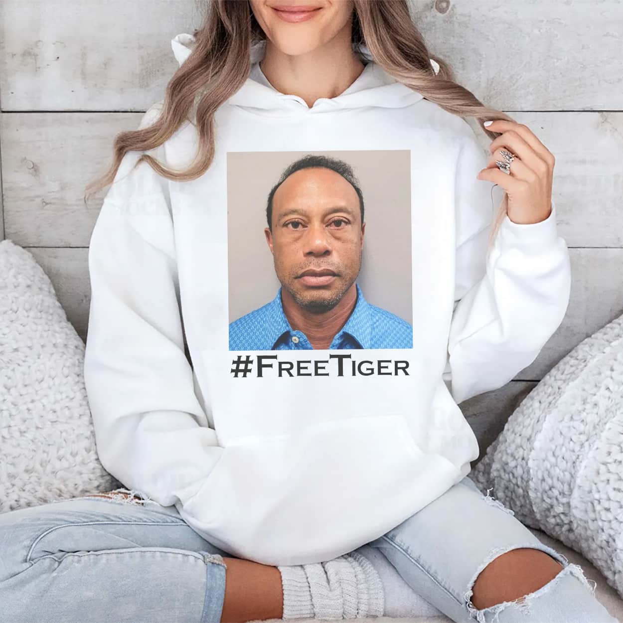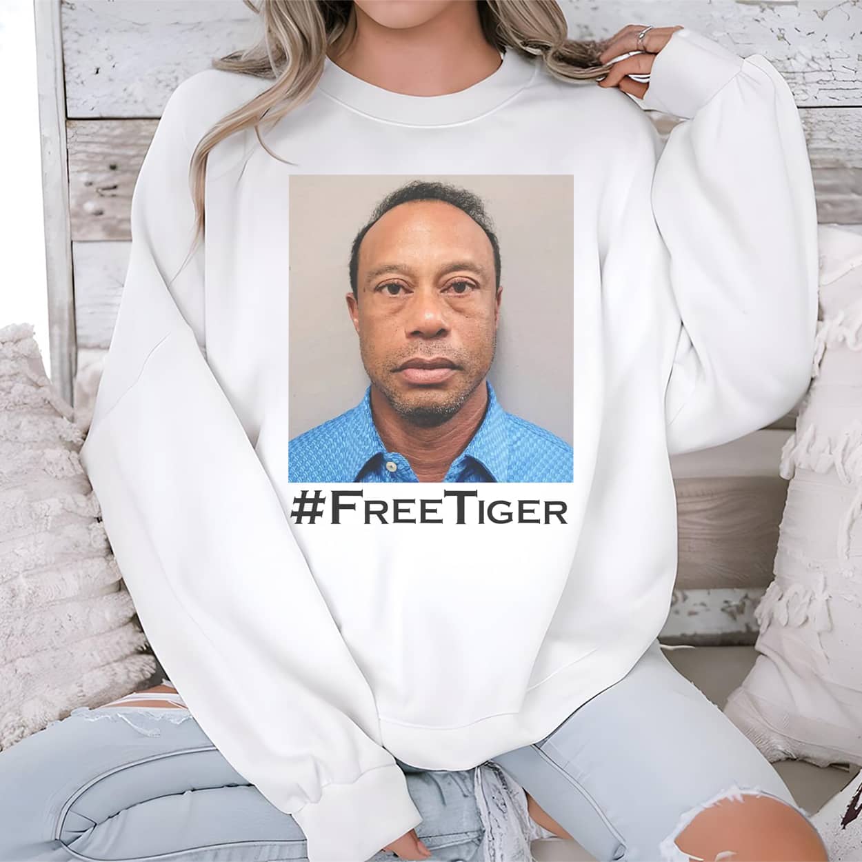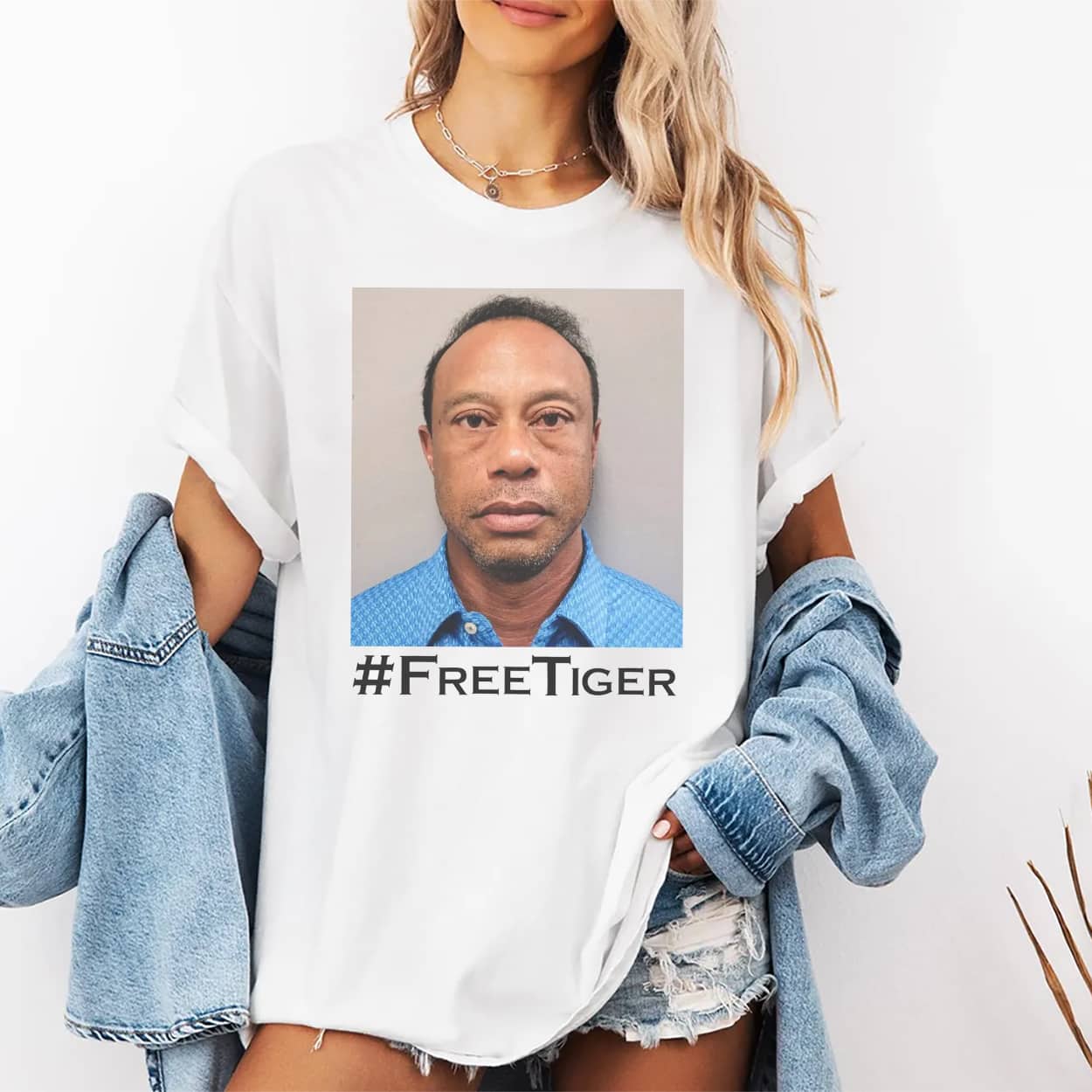 Make a bold statement with the Free Tiger Mugshot Shirt! Featuring the infamous viral photograph and “#FREETIGER” hashtag, this graphic tee is perfect for golf fans and pop culture enthusiasts. Order your piece of internet sports history today!