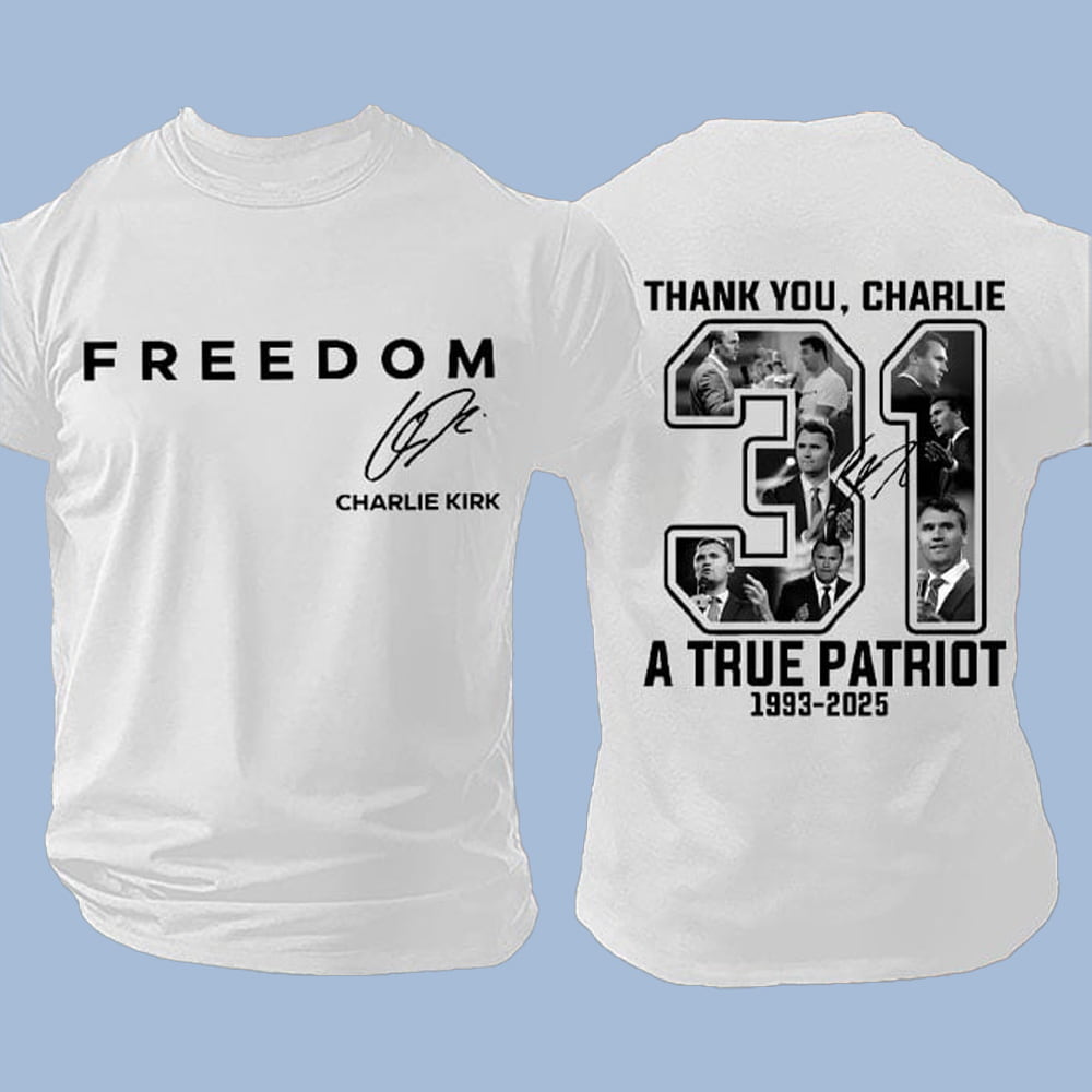 Celebrate Charlie Kirk’s legacy with the Freedom Thank You Charlie A True Patriot Red Shirt. Featuring bold “FREEDOM” on the front, a striking photo-collage “31” on the back, and signature accents, this limited-edition red tee makes a powerful statement. Perfect for fans, collectors, and patriots, it unites supporters with a shared tribute. Wear it to honor his spirit and spark conversations. Order yours today—supplies are limited!