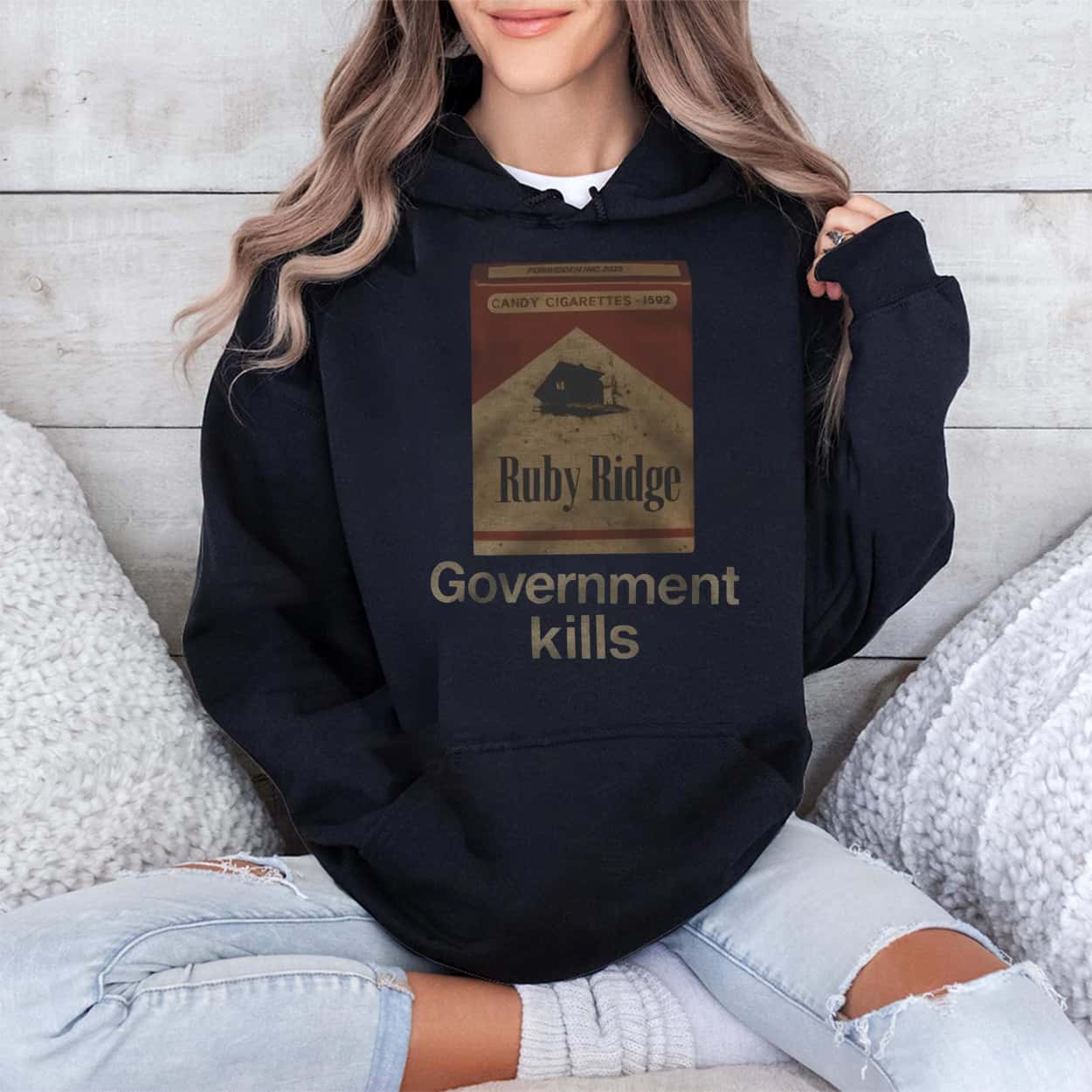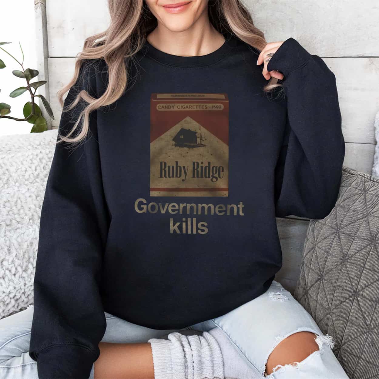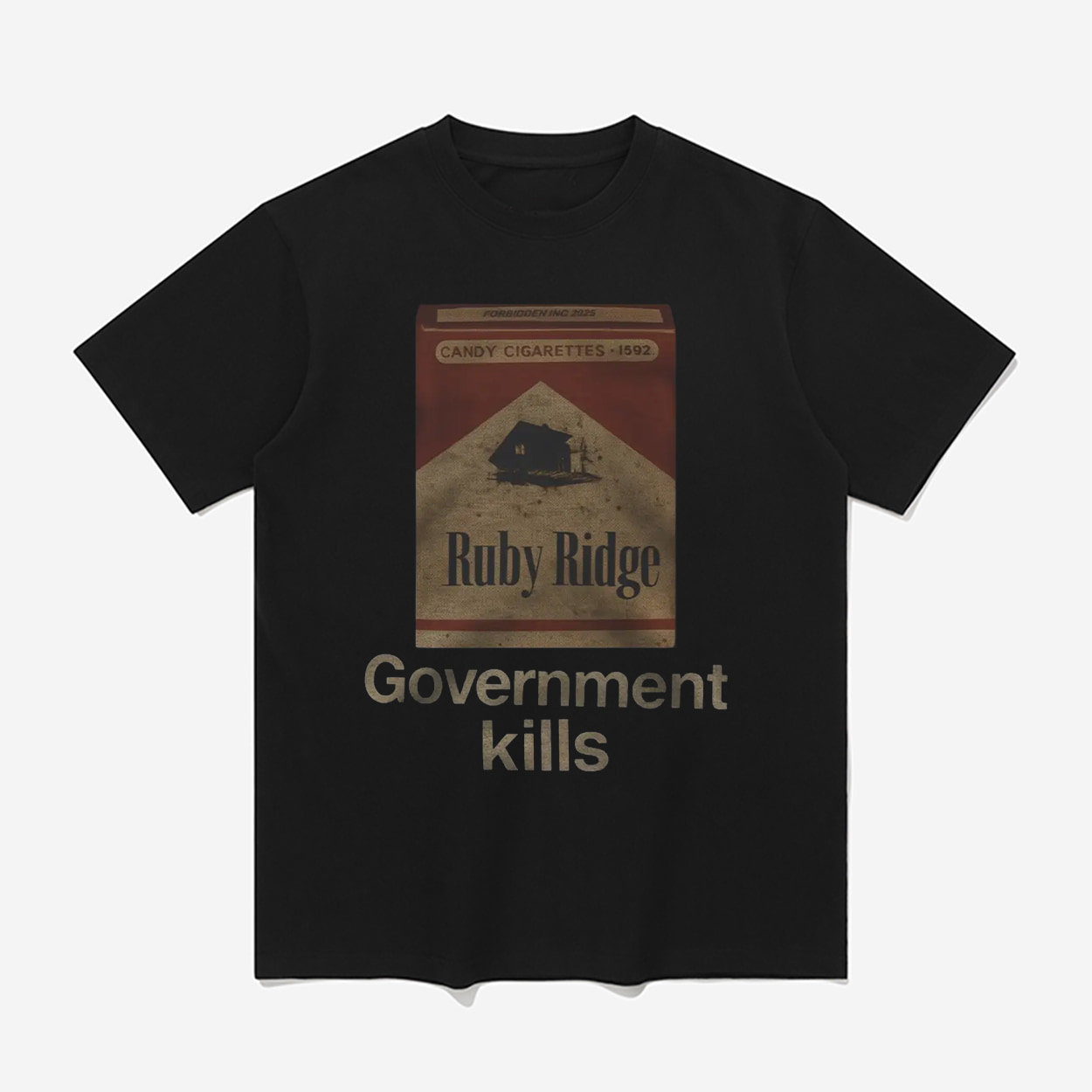 The Government Kills Ruby Ridge Shirt captures a moment in American history that continues to spark discussion about freedom, power, and justice. Featuring a distressed print of a cigarette box labeled “Ruby Ridge” and the phrase “Government Kills,” this shirt combines impactful design with retro appeal. Made from premium cotton, it offers a relaxed, breathable fit that ensures long-lasting comfort and durability, perfect for casual wear or statement-making occasions.