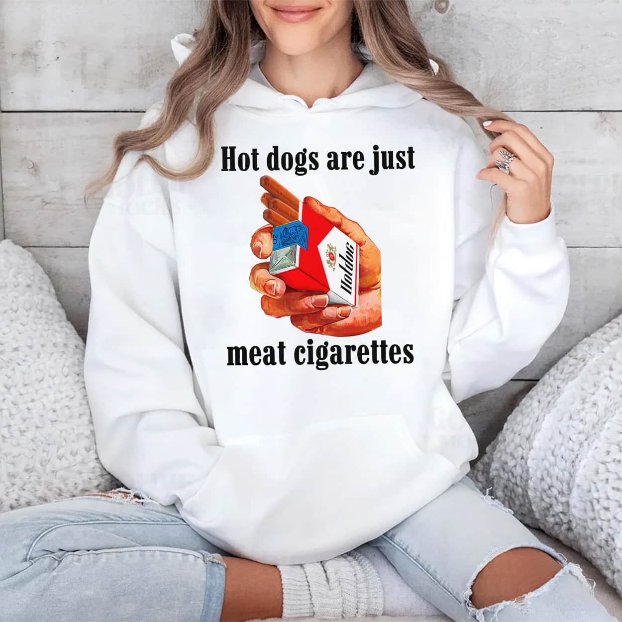 Embrace hilarious internet humor with the Hot Dogs Are Just Meat Cigarettes Shirt! Featuring a clever graphic blending vintage packaging with classic cookout food, this meme tee is the ultimate conversation starter. Order your funny apparel today!