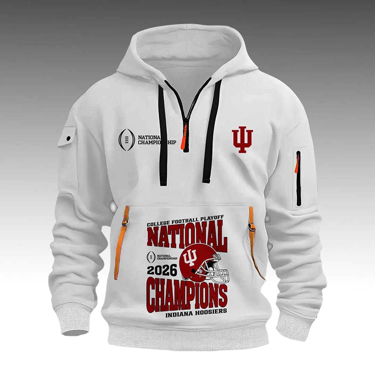 This apparel is a functional tribute to the greatest season in Indiana football history. It immortalizes the Hoosiers’ ascent to the top of the NCAA, capturing the glory of the 2026 National Championship victory. Designed for dedicated alumni, students, and fans who value utility as much as loyalty, this hoodie blends the significance of the title run with a streetwear-ready aesthetic that stands out in any crowd.