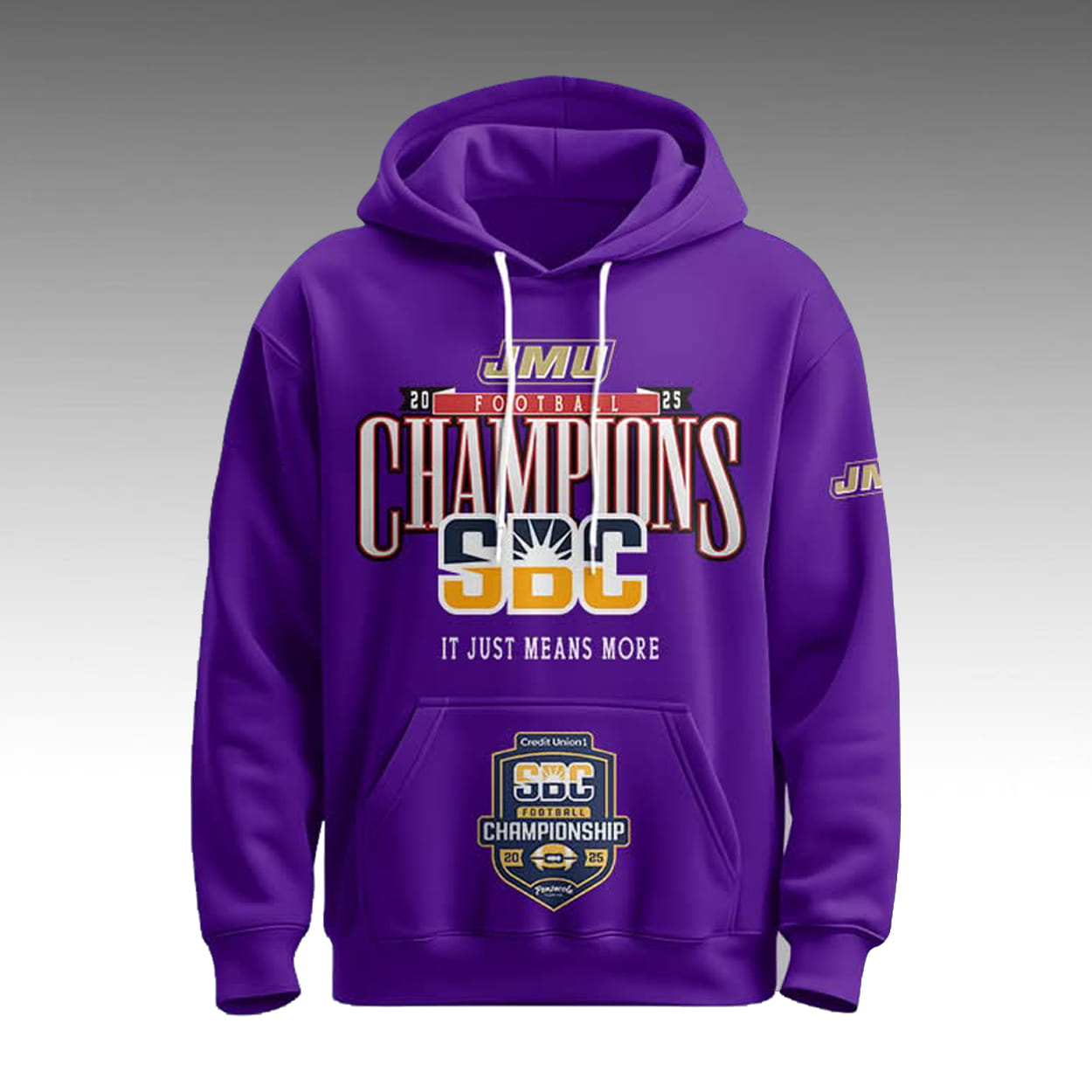 James Madison Football SBC Champions 2025 Hoodie – Purple Reign