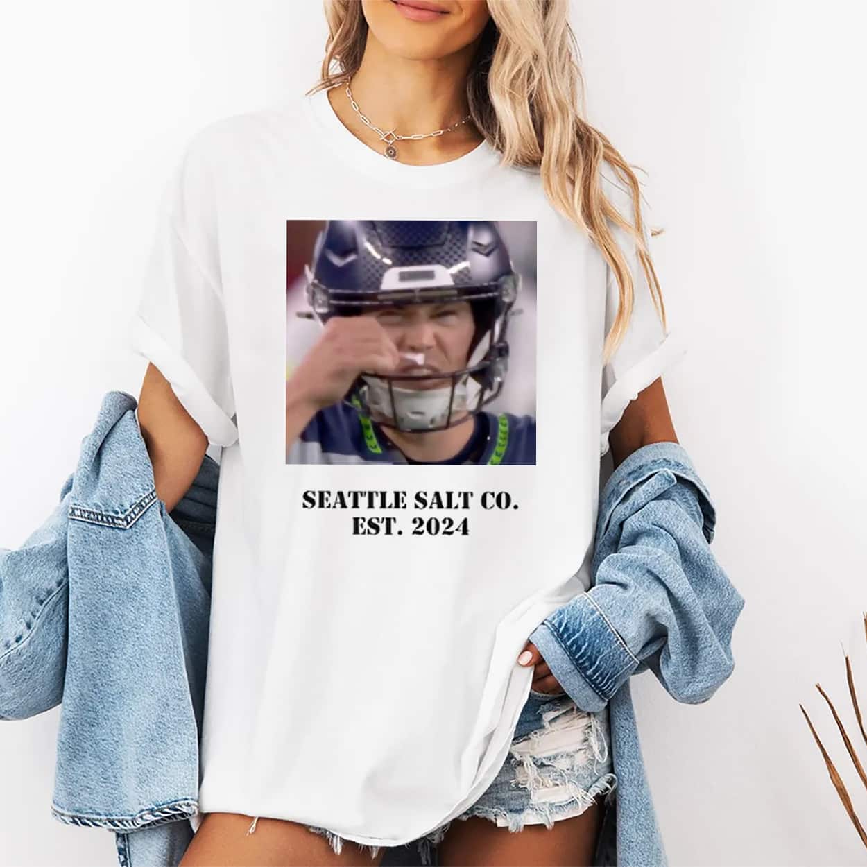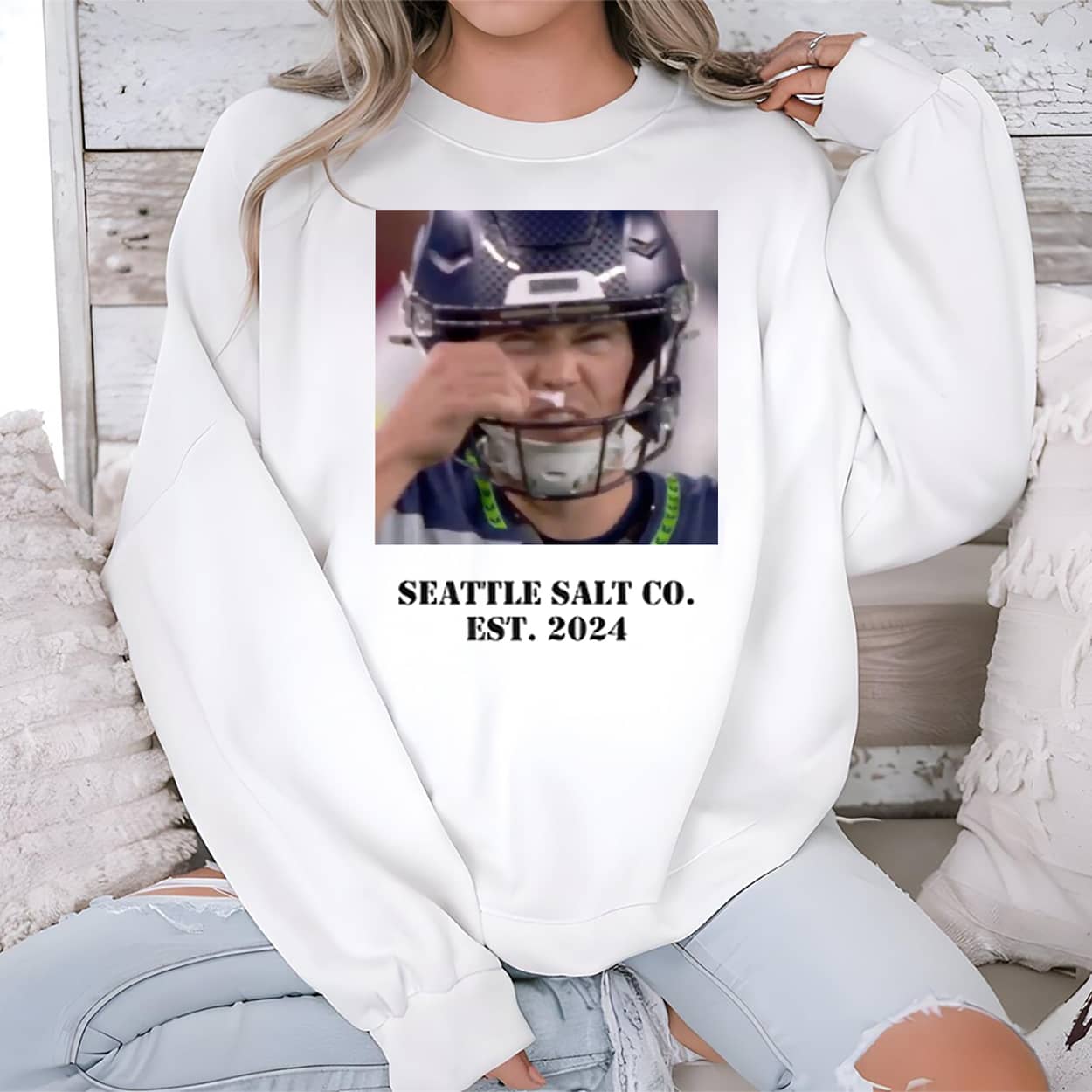 Wake up and smell the victory with the Jason Myers Seattle Salt Co EST 2024 Parade Shirt. As seen during the Seahawks championship parade, this white tee features the iconic photo of the kicker’s intense reaction to smelling salts. Branded with “Seattle Salt Co. Est. 2024,” it’s the ultimate inside joke for 12s who love the “lock-in” meme. Funny, iconic, and legendary. Order your piece of parade history today!