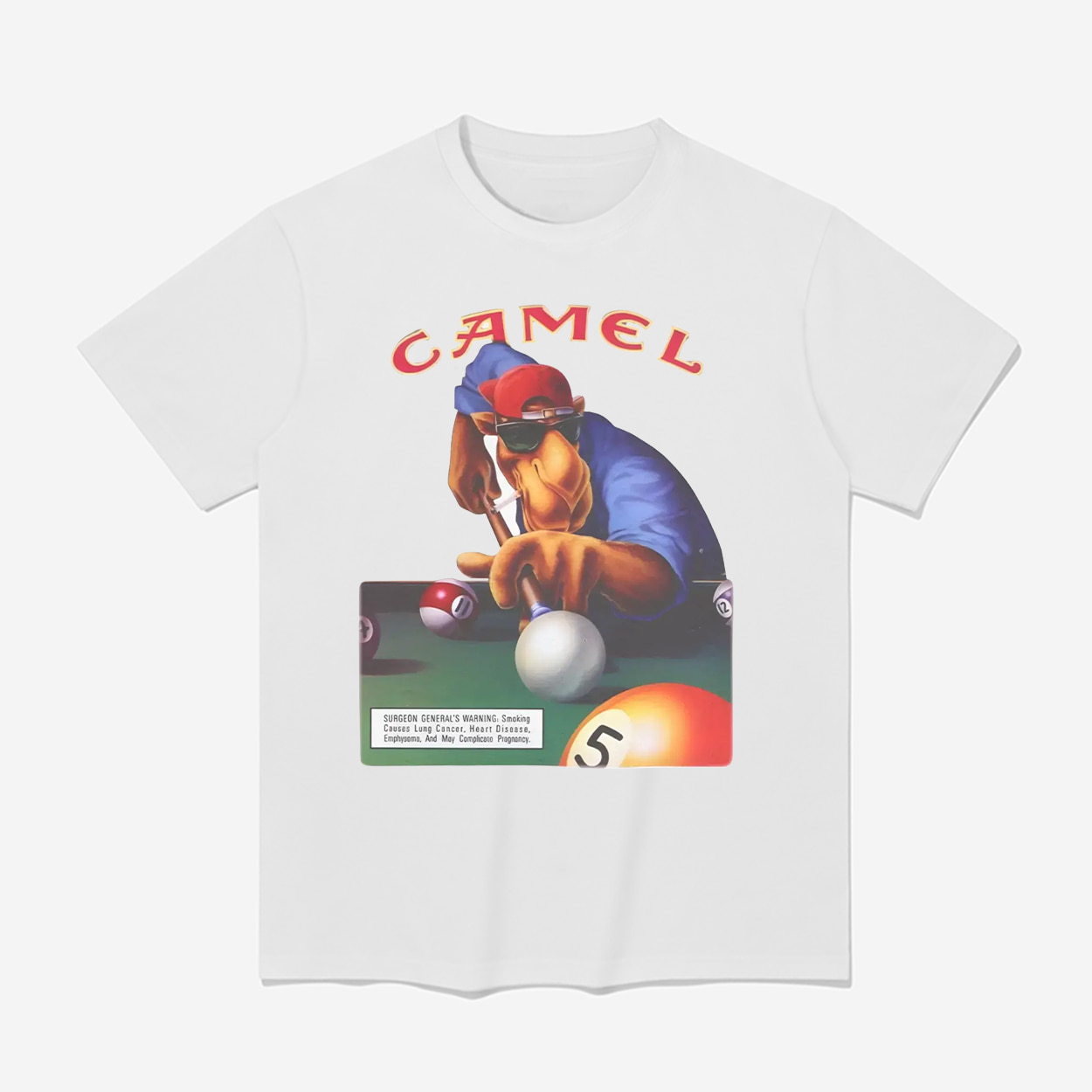 This tee is a direct throwback to the undeniably iconic era of 1990s advertising. It commemorates the 75th anniversary of the Camel brand by reviving one of the most recognizable and debated pop-culture mascots of the decade. Designed specifically for vintage apparel collectors, retro streetwear enthusiasts, and fans of 90s nostalgia, this apparel allows wearers to sport a famous and edgy piece of commercial history.