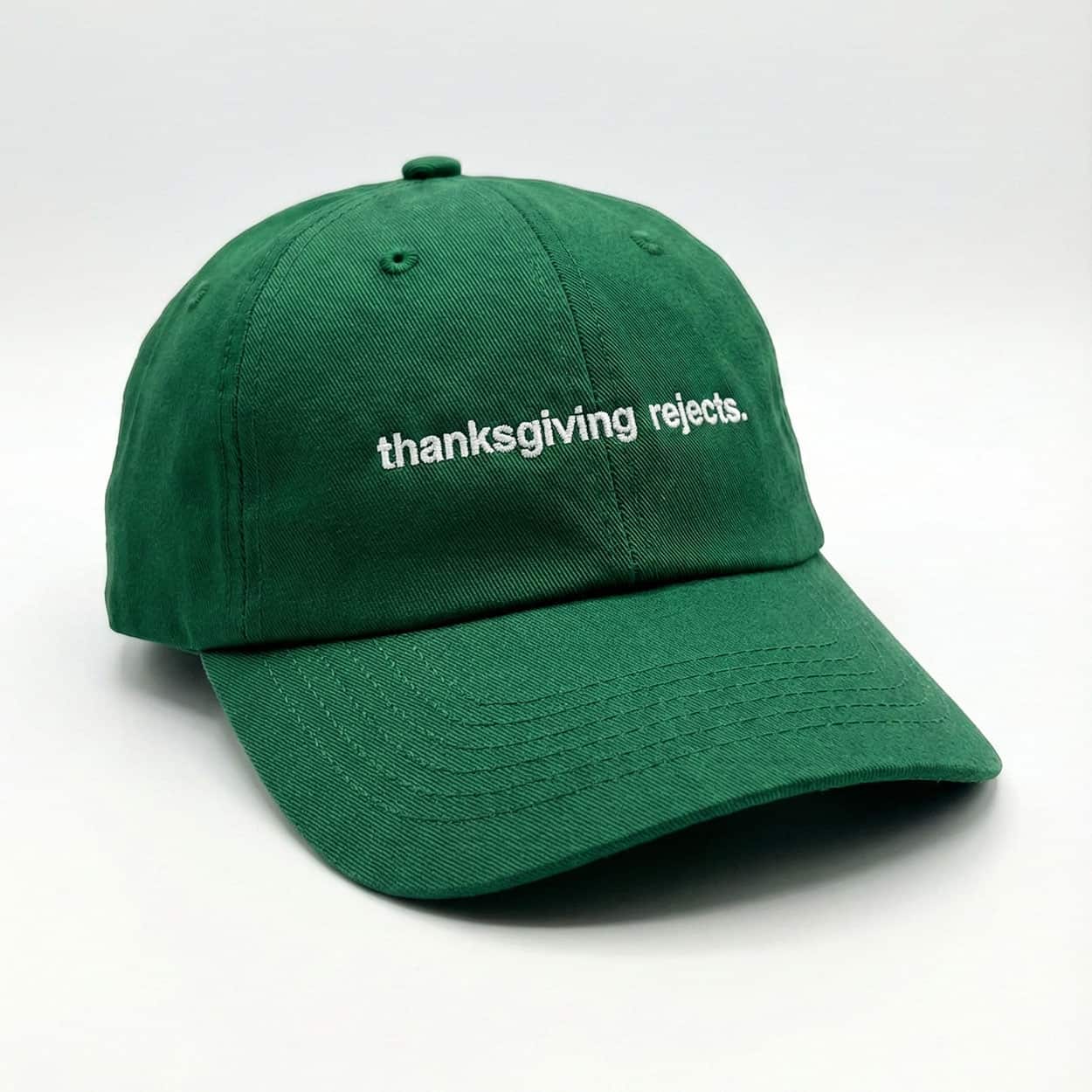 Embrace non-traditional vibes with the Lena Dunham and Lily Allen Thanksgiving Rejects Hat, a green dad cap seen on the stars during their 2025 NYC Odeon dinner. Simple white embroidery celebrates city dwellers and chosen family feasts. Perfect for humor fans craving edgy, conversation-starting accessories that roast holiday norms – snag this trending piece now!