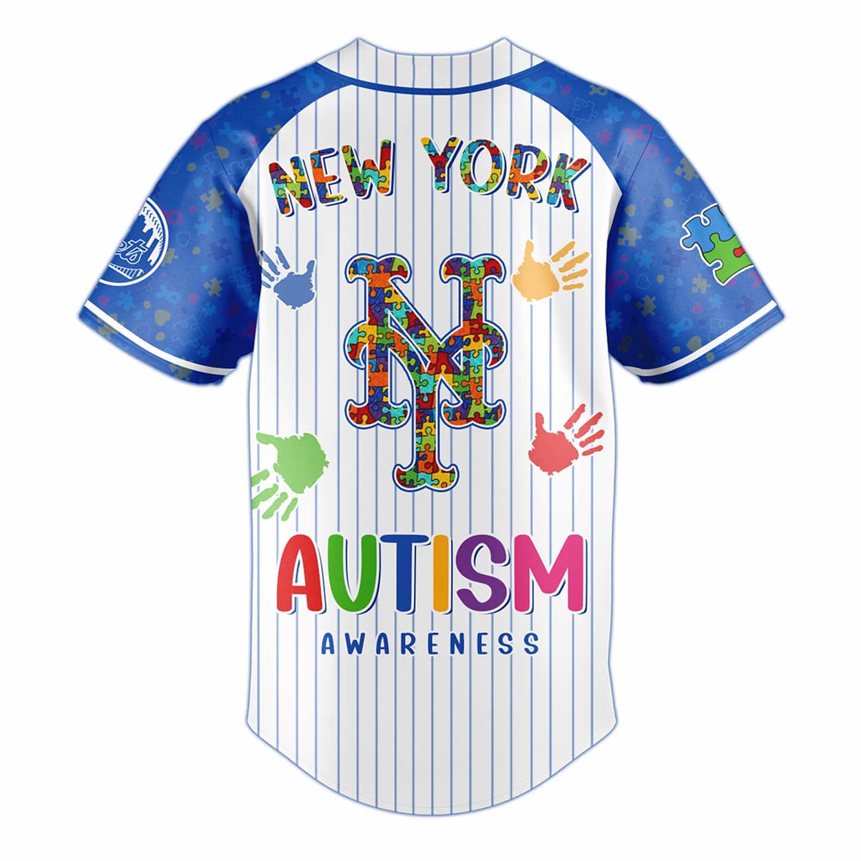 Show your support for neurodiversity with the Mets Autism Awareness 2026 Jersey. Featuring an intricate puzzle piece motif inside the iconic team logos and playful handprint graphics across a classic pinstripe design, this apparel is perfect for passionate fans and advocates. Celebrate community spirit, raise vital visibility, and make a meaningful impact at the ballpark or everyday events. Don’t miss out on this inclusive New York baseball gear—order yours today and wear your heart on your sleeve!