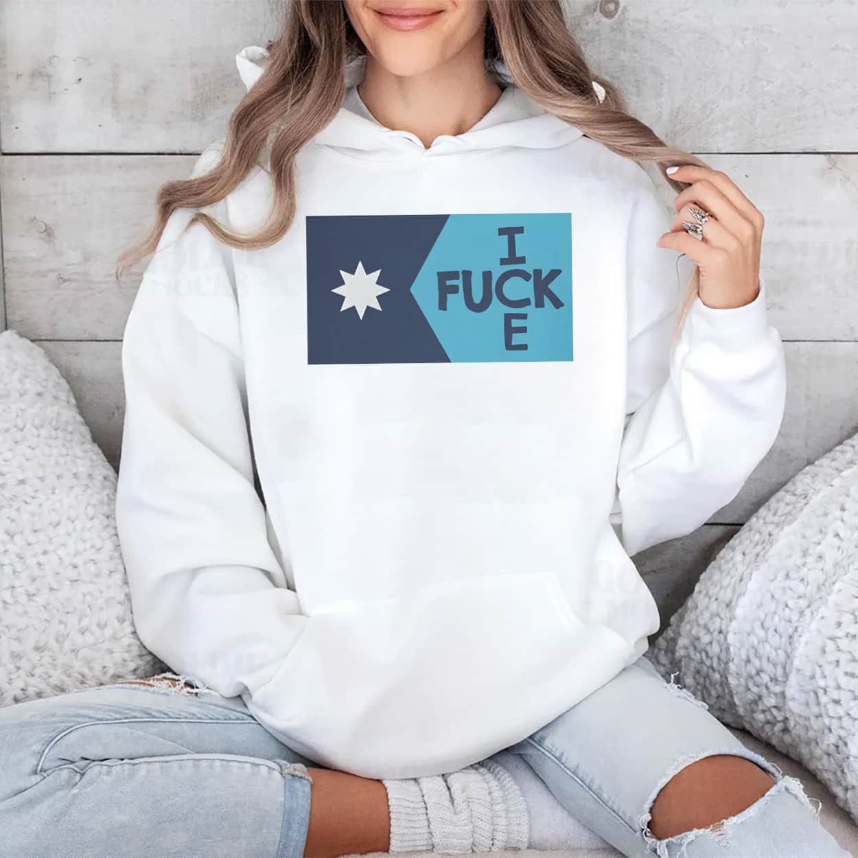 Transform state pride into a badge of resistance. This graphic t-shirt utilizes the new Minnesota state flag design—characterized by the dark blue “K” shape and the eight-pointed North Star—as a canvas for political protest. On the light blue field, the standard imagery is replaced by a stark, vertical typographic stack reading “I FUCK E,” a clever and aggressive deconstruction of the ICE (Immigration and Customs Enforcement) acronym that inserts the community’s true sentiment directly into the agency’s name.