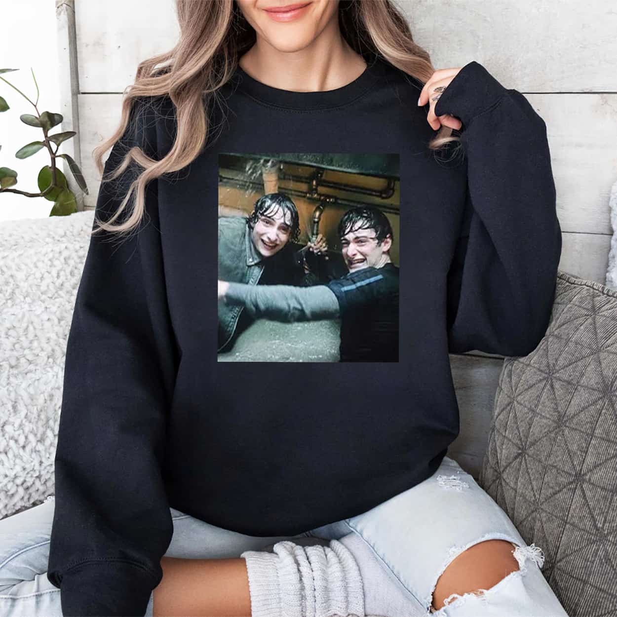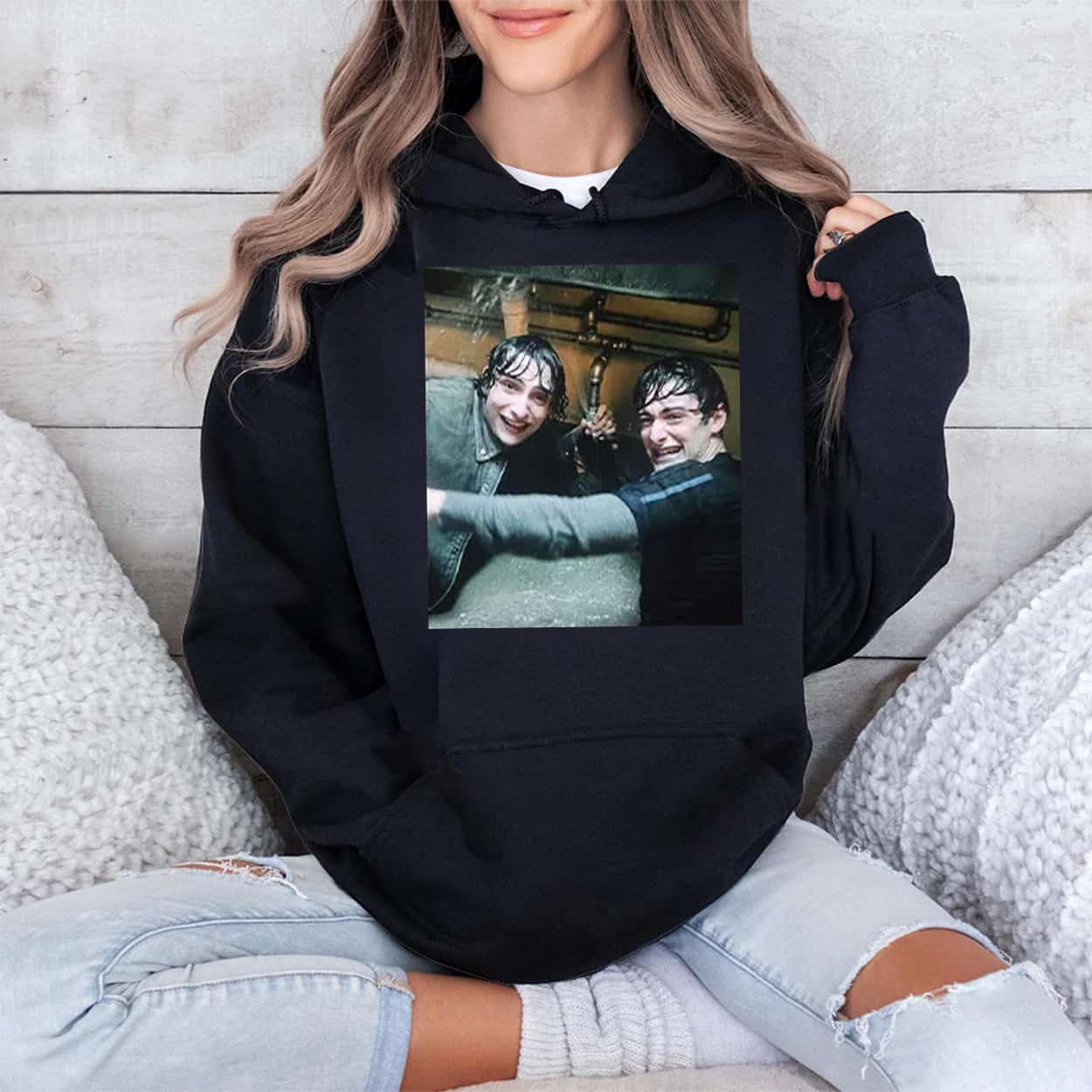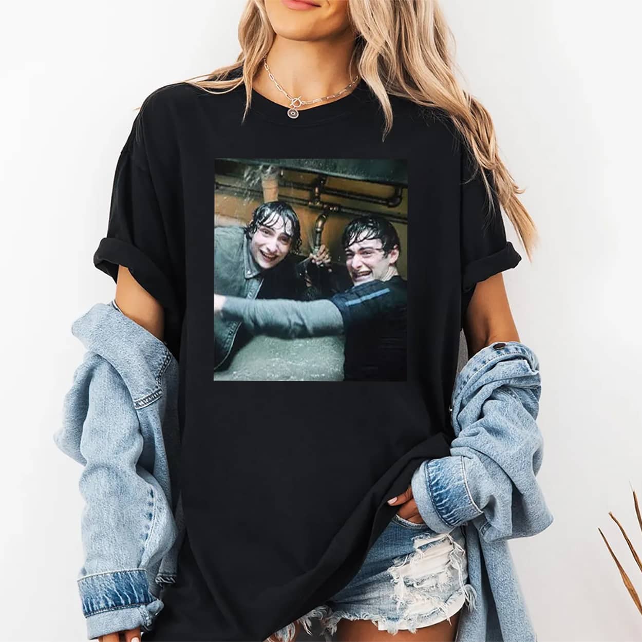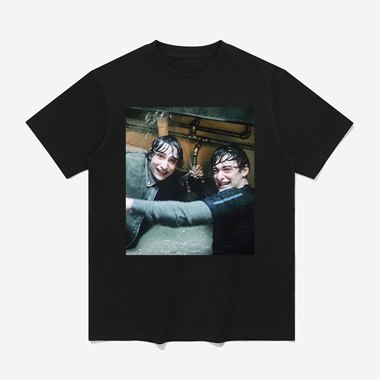 This tee draws from the cultural phenomenon of Stranger Things’ fifth season, where the water leak moment between Will (Noah Schnapp) and Mike (Finn Wolfhard) became a fan-favorite for its blend of humor and brotherly bond amid escalating Upside Down threats. It signifies the series’ enduring appeal in capturing teen antics against supernatural backdrops, commemorating the Duffer Brothers’ storytelling magic and the cast’s chemistry that kept viewers hooked through 2025’s final episodes. Aimed at die-hard Stranger Things enthusiasts, ’80s revival collectors, and binge-streaming superfans who treasure scene-specific nods to Hawkins’ heroes.