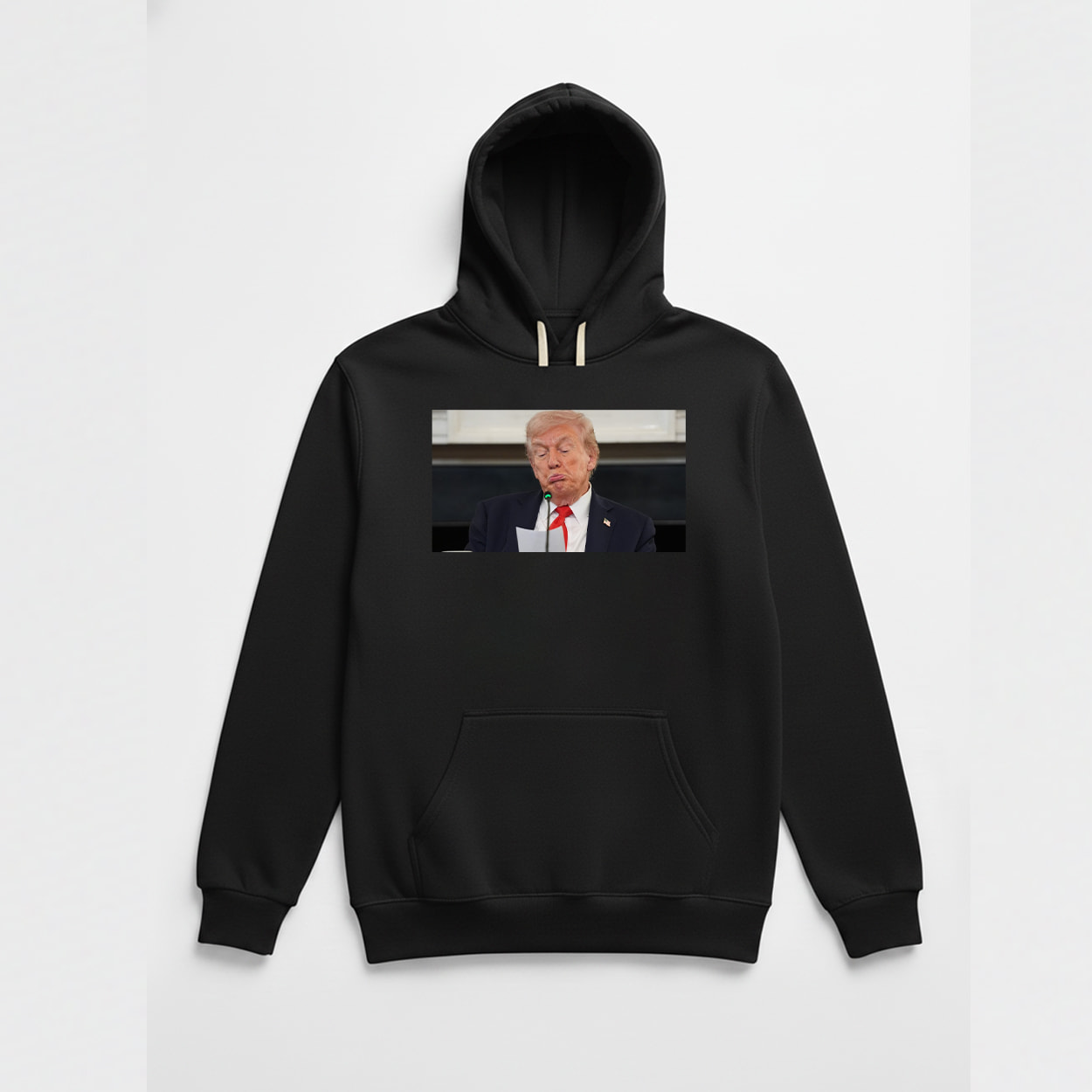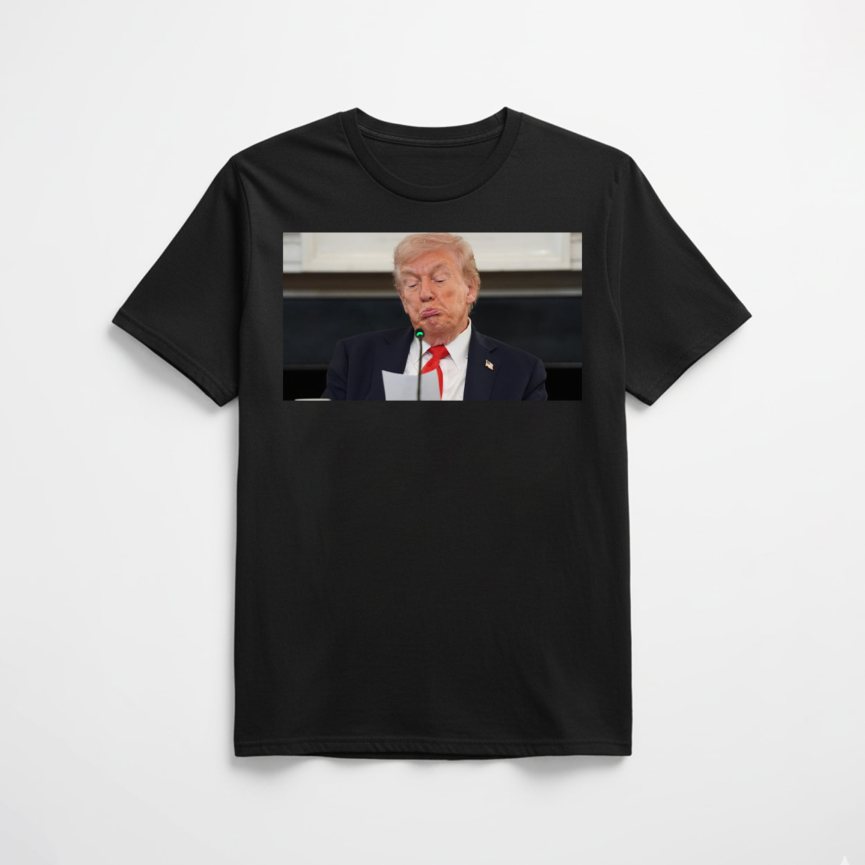 This design is for the bold thinkers and politically savvy who appreciate sharp, witty satire, and it’s now more relevant than ever. The shirt turns an aspirational political goal on its head with a tongue-in-cheek preemptive declaration. The image captures a moment of deep focus, which, when paired with the text, creates an instantly recognizable visual gag. Wear the confirmed news!