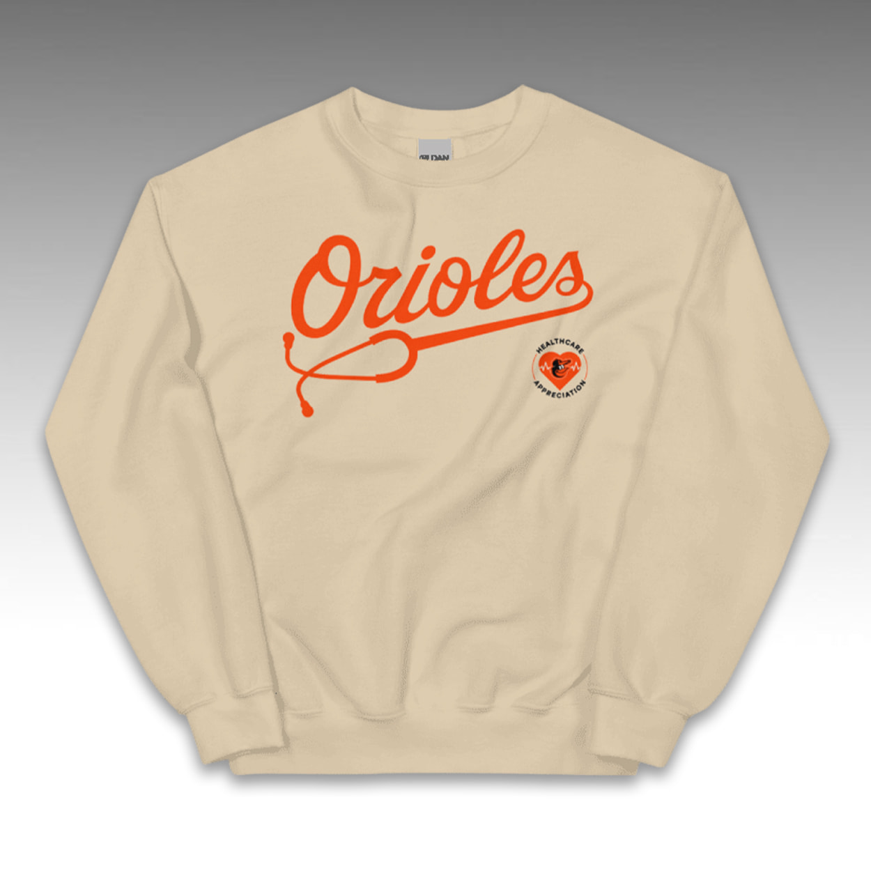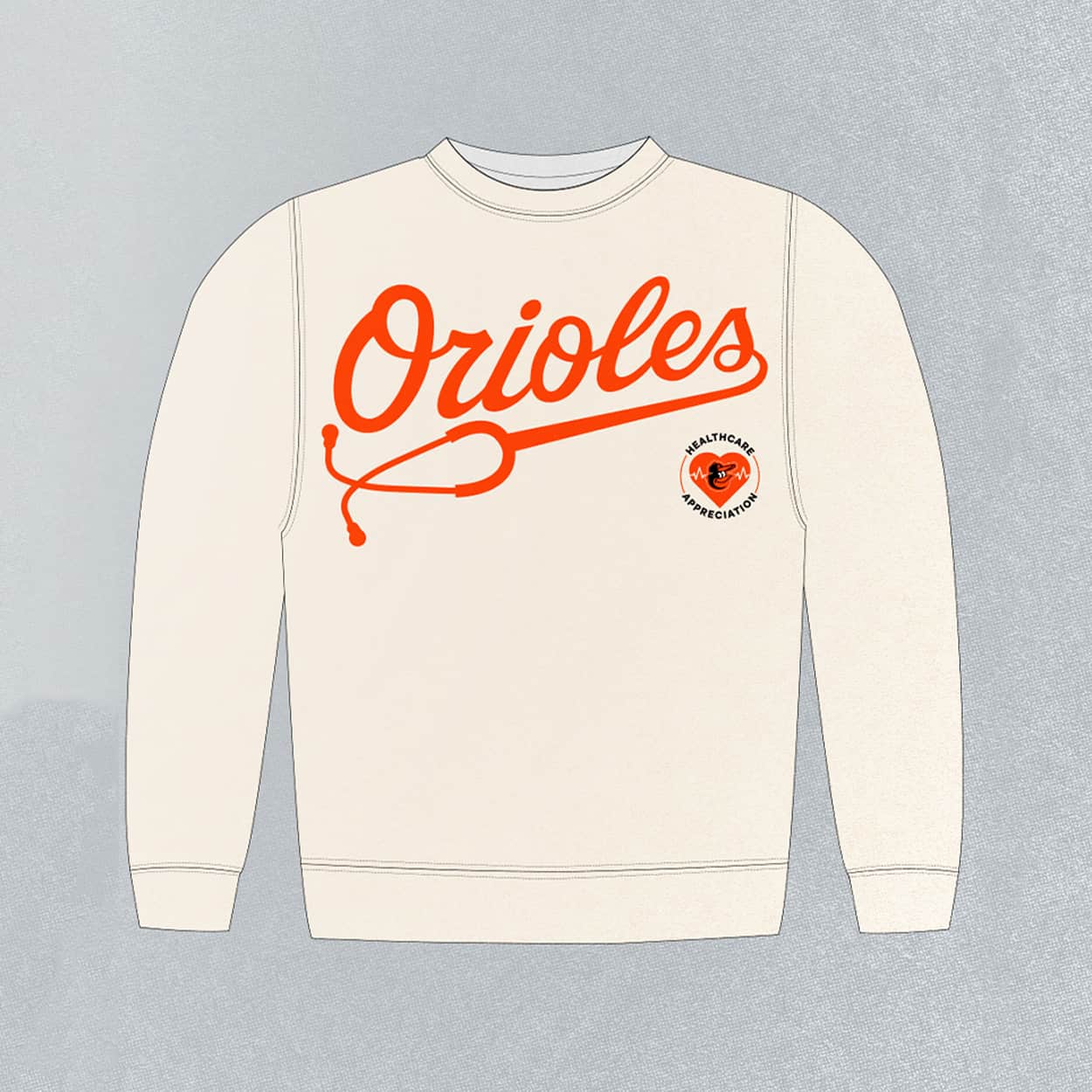 Designed specifically for dedicated baseball fans, proud medical workers, nursing students, and exclusive memorabilia collectors. Adding this pullover to your collection guarantees a massive conversation starter for exciting game days, long hospital shifts, or casual weekend hangouts. It evokes a feeling of profound civic pride, unbreakable community spirit, and unwavering loyalty to the hometown heroes both on the diamond and in the clinic. Order the Orioles Healthcare Appreciation Sweatshirt right now and wear your community pride!