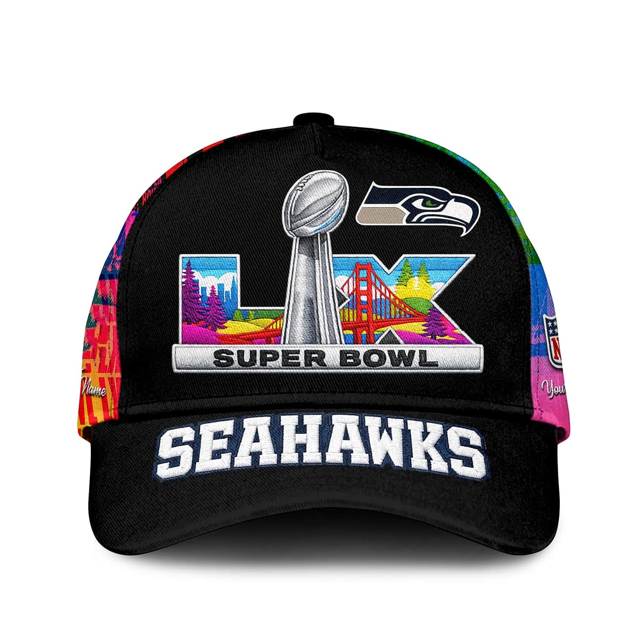 Crown your fandom with the Personalized Seahawks 2026 Super Bowl Classic Cap, featuring vibrant Super Bowl LX San Francisco graphics, Seahawks logo, and custom name embroidery for ultimate personalization. This limited-edition piece celebrates Seattle’s hypothetical championship triumph – ideal for fans craving adjustable headwear that blends team pride with Bay Area flair. Perfect for game days or casual outings, own this collectible essential and showcase your 12s loyalty today!