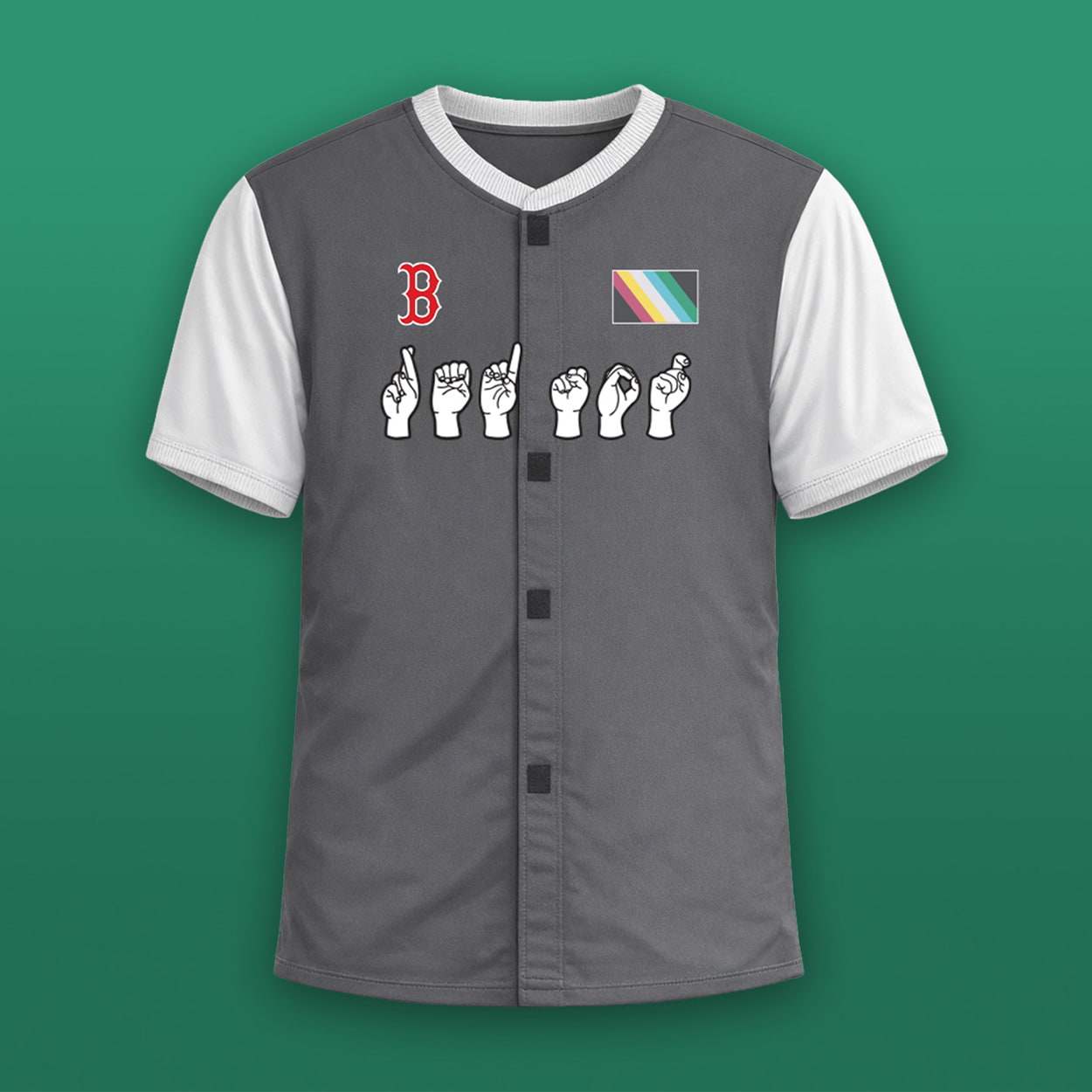 This highly accessible jersey is thoughtfully engineered for ease of wear, utilizing convenient Velcro closures down the front placket. The chest design replaces standard lettering with the team name beautifully fingerspelled in American Sign Language (ASL), positioned just below the traditional franchise initial and the official Disability Pride flag. To further champion accessibility, the sleeve incorporates readable braille spelling out the franchise name.