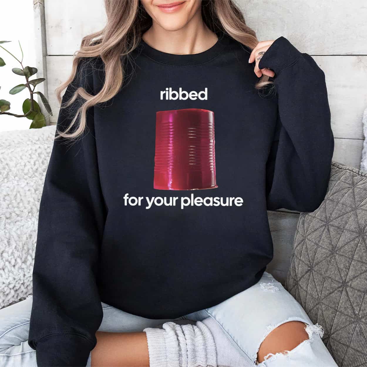 This isn’t just any holiday apparel; it’s a brilliant piece of adult humor centered on a single, perfect pun. The design is simple and bold: the phrase “ribbed” and “for your pleasure” surrounds a glossy, vibrant image of the most nostalgic holiday food of all—jellied cranberry sauce, complete with the signature rings from the can. It’s a hilarious, “if you know, you know” joke that lands perfectly.