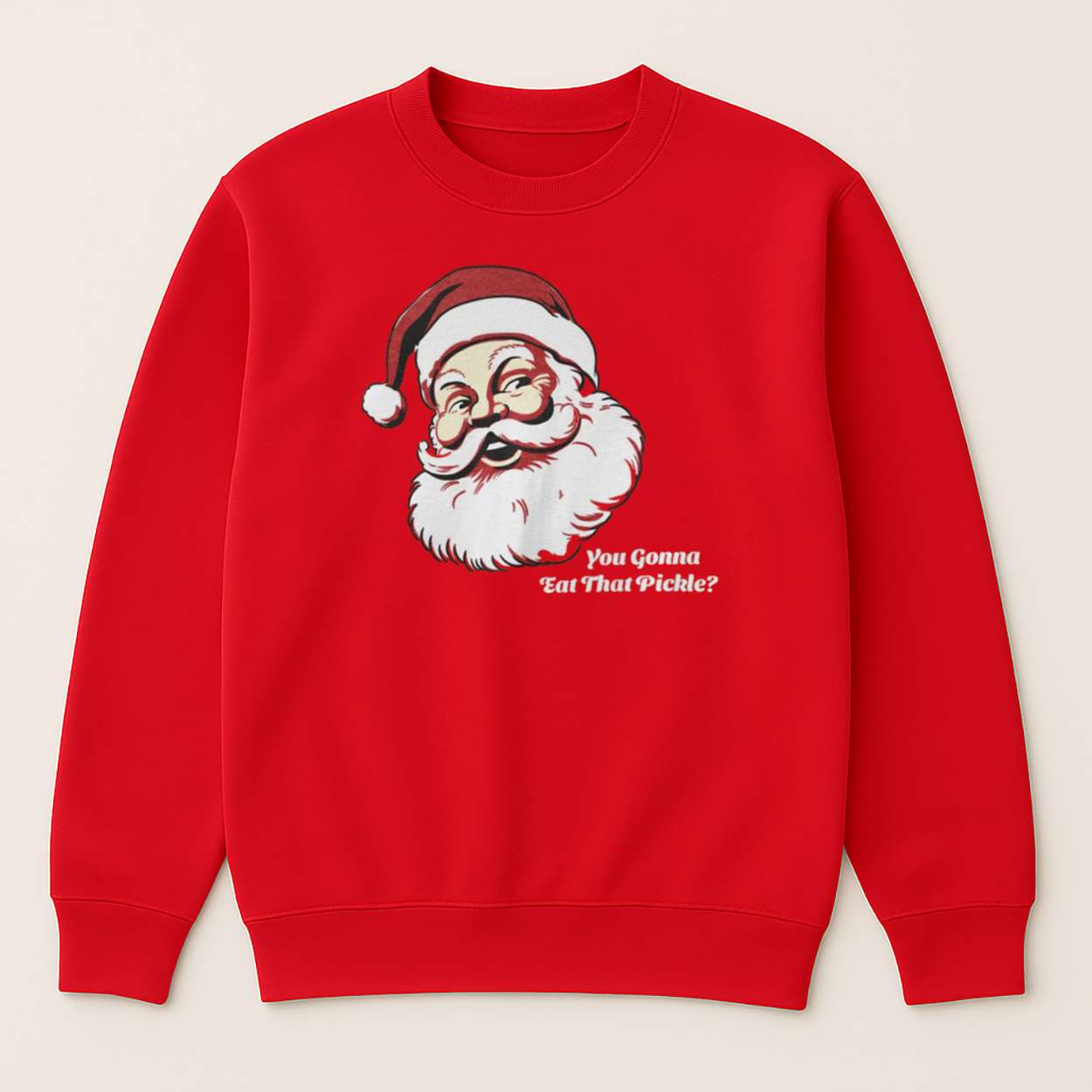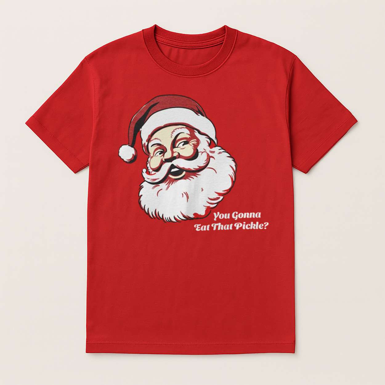Get festive with a twist! The Santa Claus You Gonna Eat That Pickle Shirt blends classic holiday charm with quirky humor. Featuring a jolly Santa and unexpected pickle banter, it’s perfect for sparking conversations and turning heads this season.