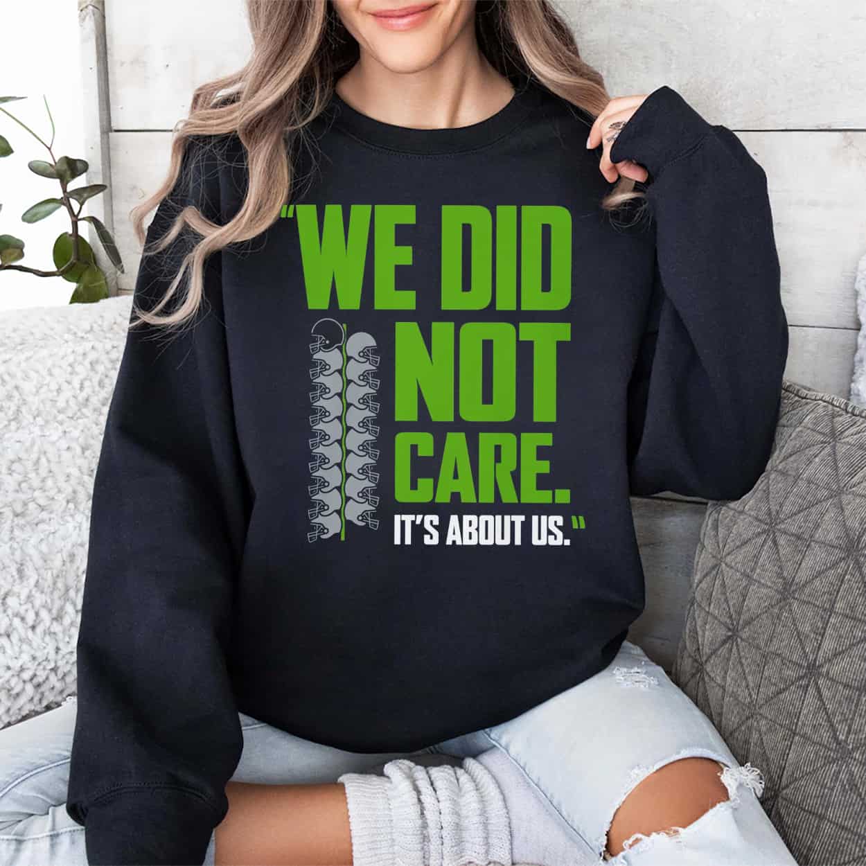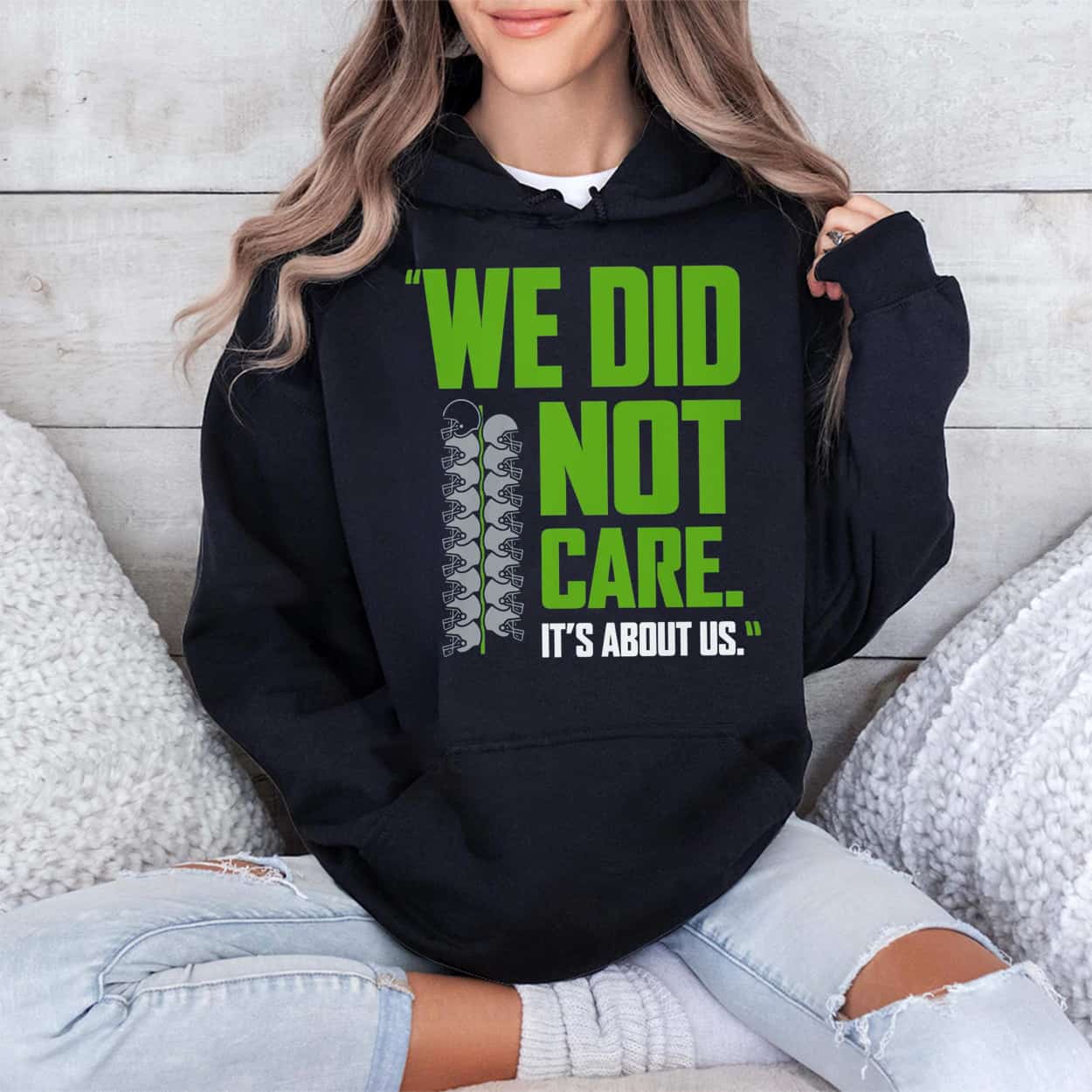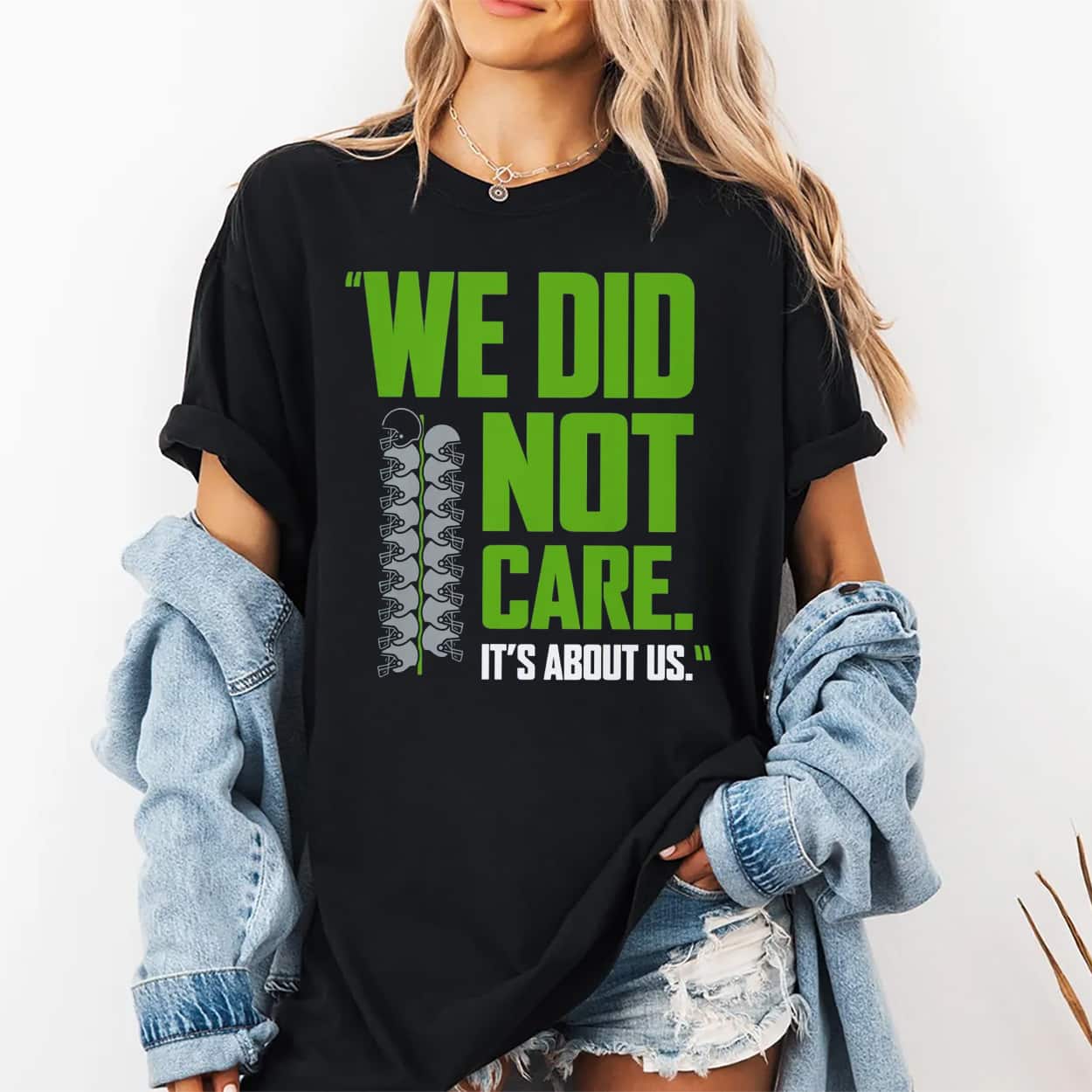 Silence the outside noise with the Seahawks We Did Not Care It’s About Us Shirt. This gritty graphic tee captures the ultimate locker room mindset: it doesn’t matter who the opponent is; it’s about us. Featuring striking neon green typography and a tactical helmet stack graphic, it’s the uniform for fans who believe victory comes from within. Ignore the hype. Play your game. Order this statement piece today.