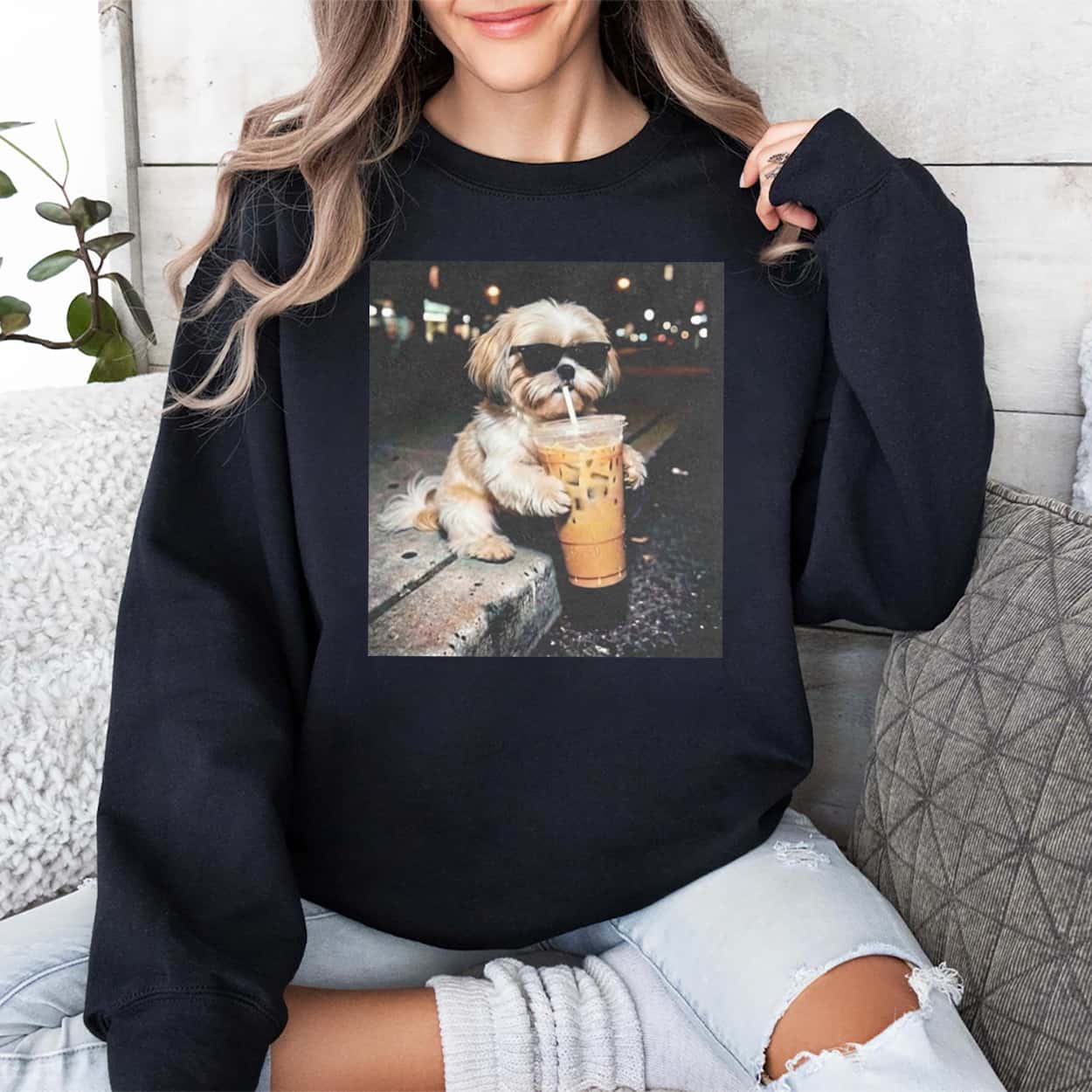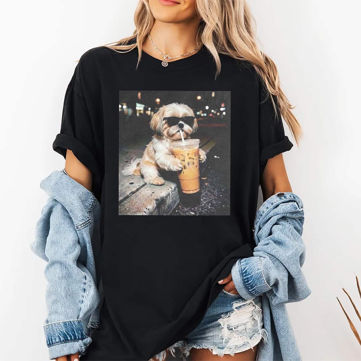 Shih Tzu Drinking Iced Coffee T-shirt – Sip in Style