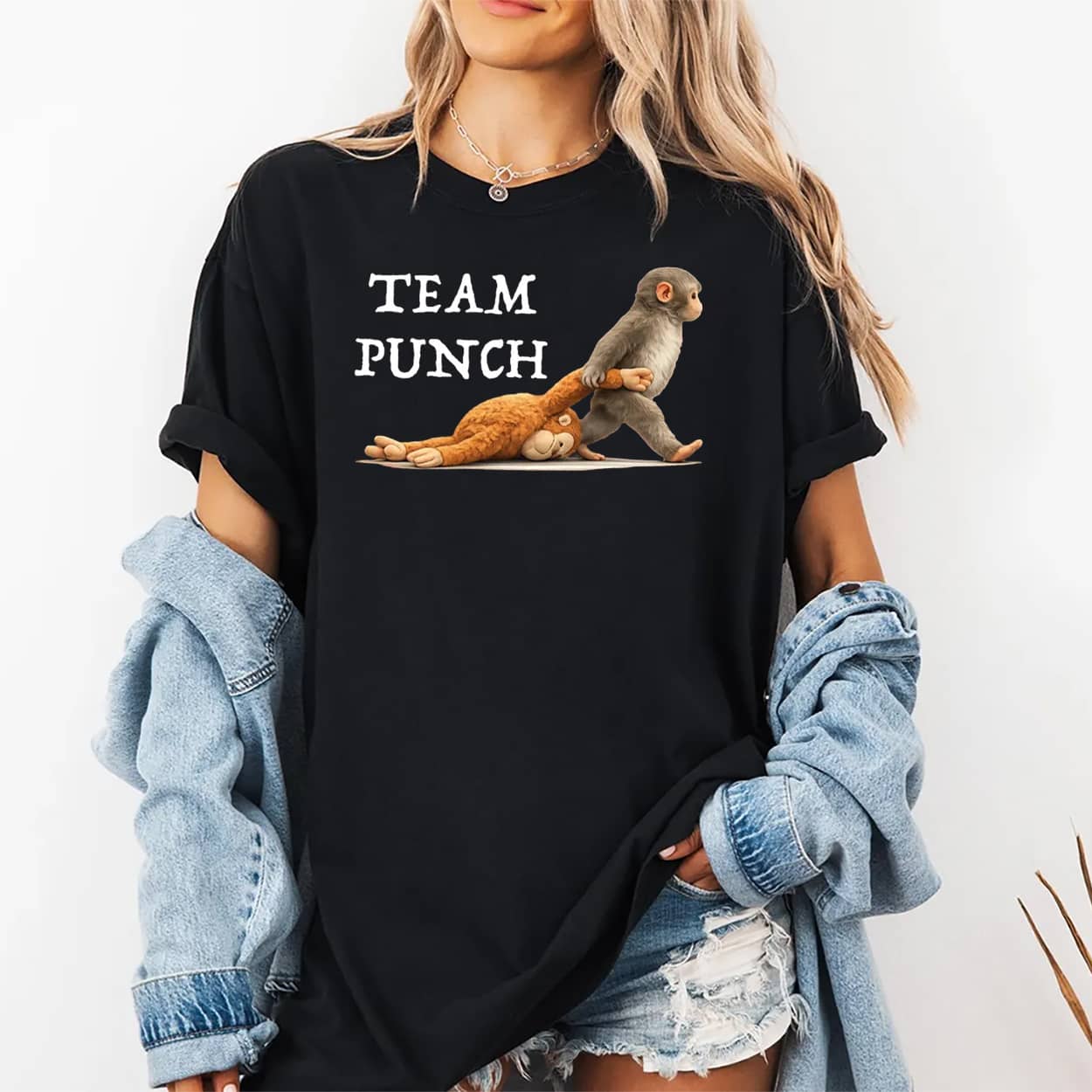 Join the internet’s favorite squad with the Team Punch Baby Monkey Tee! Featuring the viral Japanese macaque dragging its signature orange plush toy, this graphic t-shirt captures the hilarious zoo meme that took over the world. Packed with pop-culture humor, it’s the ultimate streetwear piece for meme lovers and animal fans alike. Show your loyalty to the funniest primate online. Order your exclusive Team Punch shirt today!