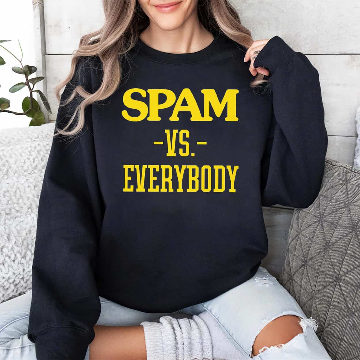 This Tetairoa McMillan Spam VS Everybody Shirt features a bold “Spam VS Everybody” graphic, a clever nod to the canned meat staple that serves as a cultural icon in Hawaii.