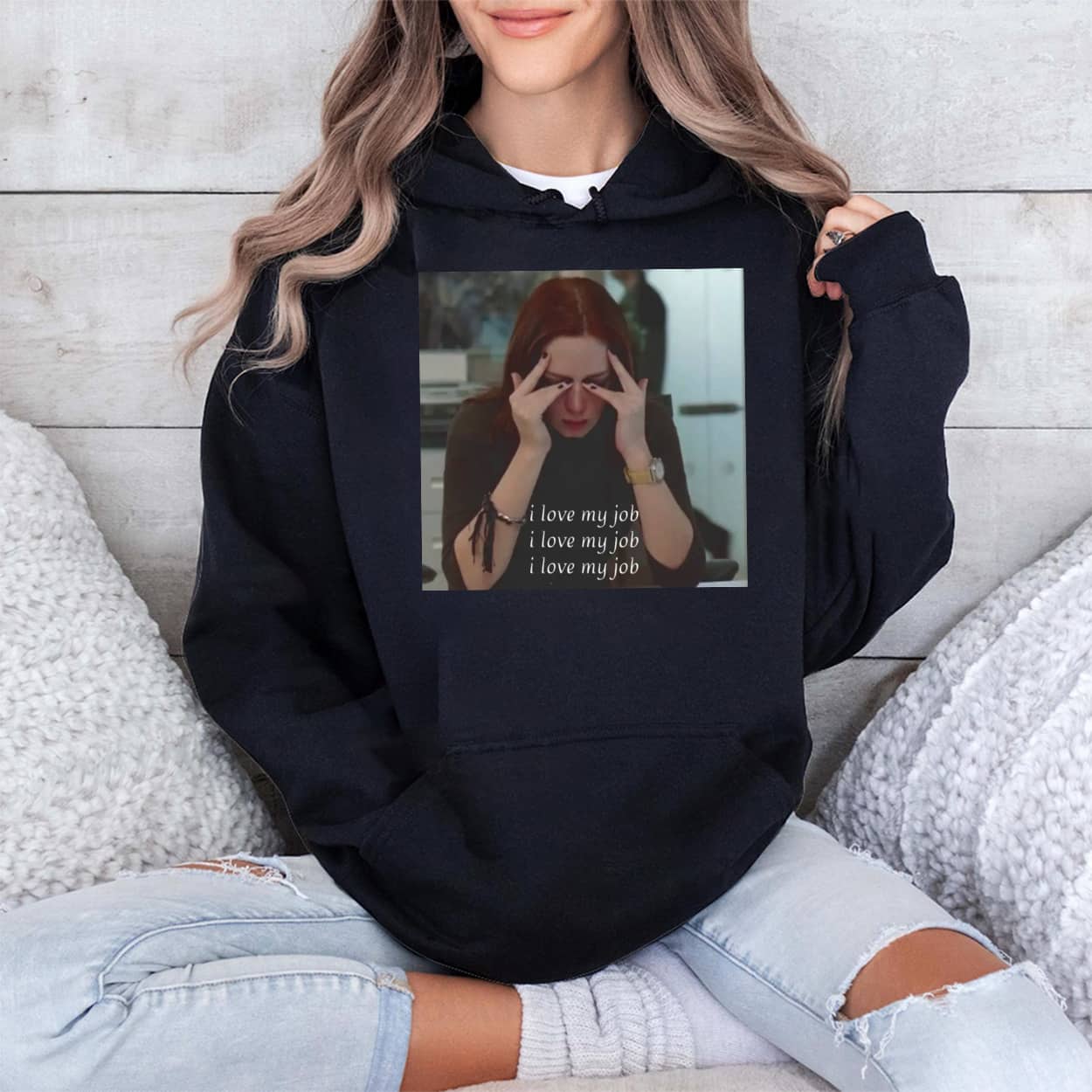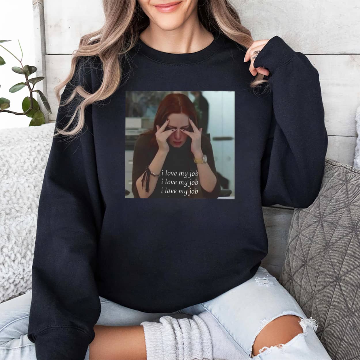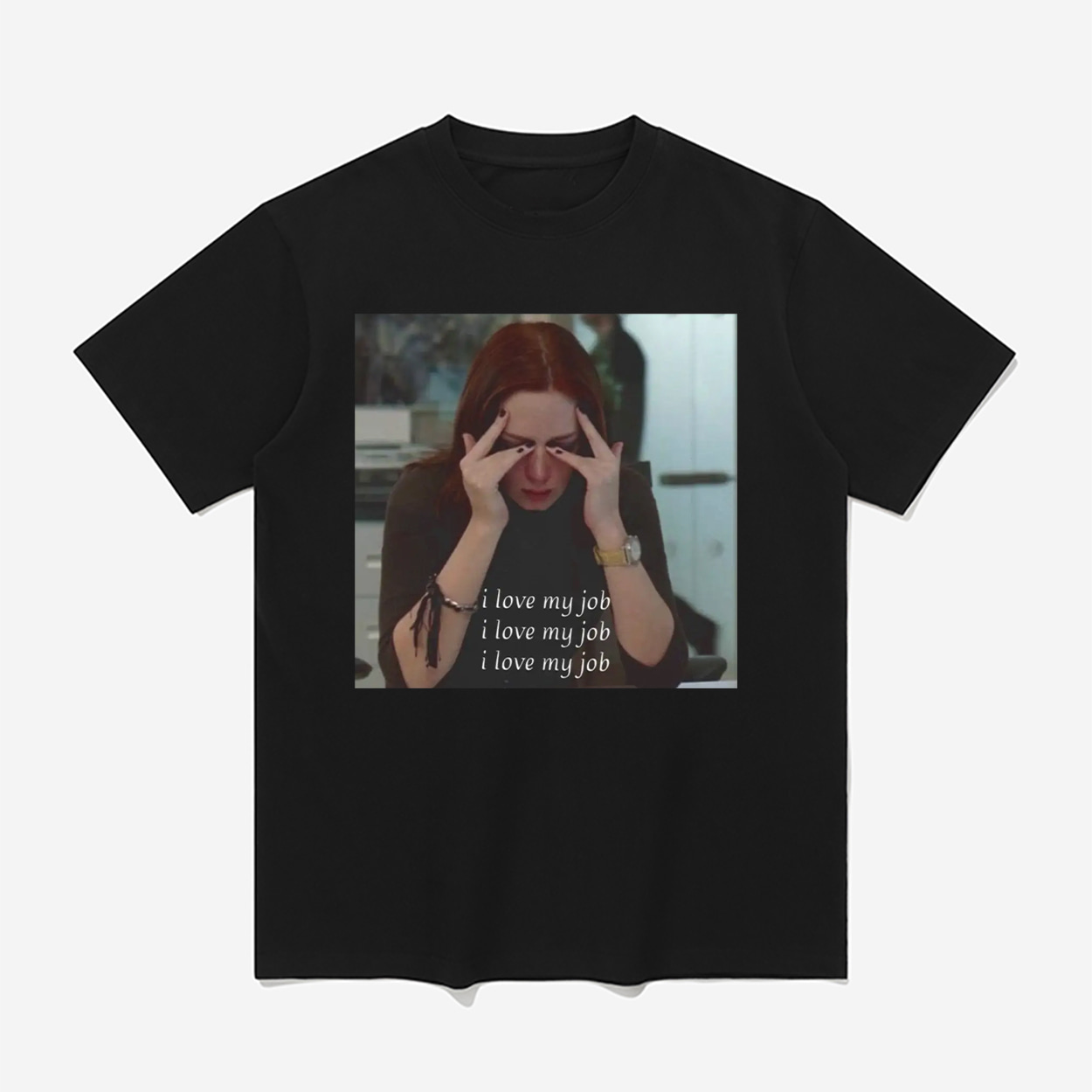 Embrace office culture humor with the iconic Devil Wears Prada I Love My Job Meme Shirt! Featuring Emily Charlton’s hilarious cinematic coping mechanism, this comfortable graphic tee is the ultimate statement piece for overworked employees and cinema lovers alike. Upgrade your casual streetwear and order your relatable apparel today!