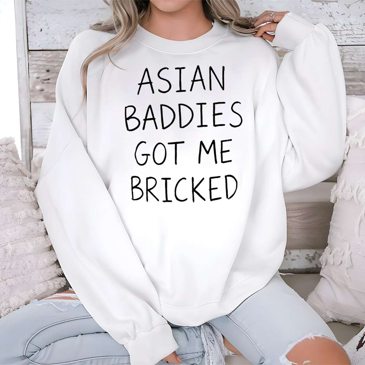 Turn heads with the Trump Asian Baddies Got Me Bricked Shirt—a satirical fusion of global politics, internet slang, and cultural commentary. This bold design captures the chaos of modern media and meme culture in one unforgettable statement piece.