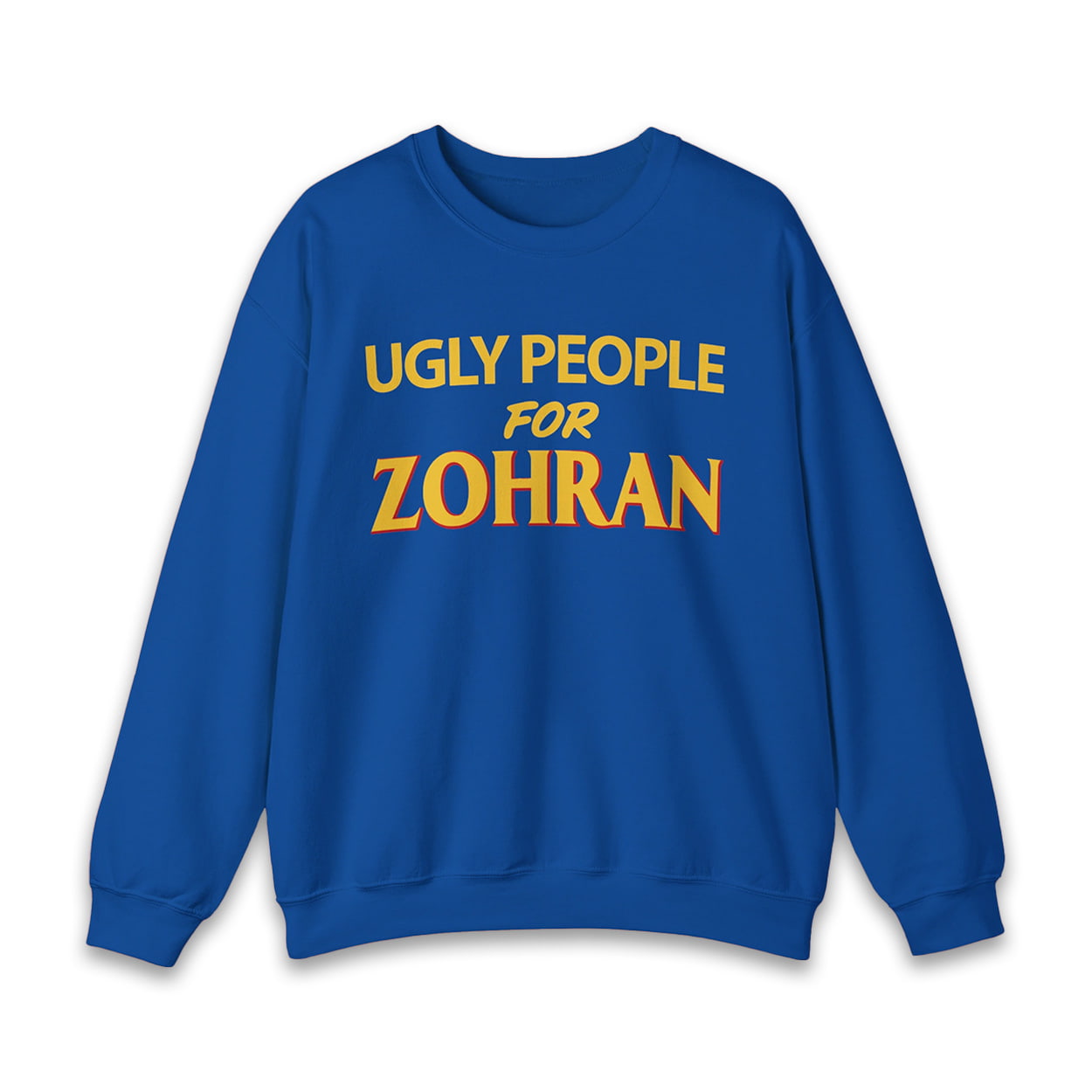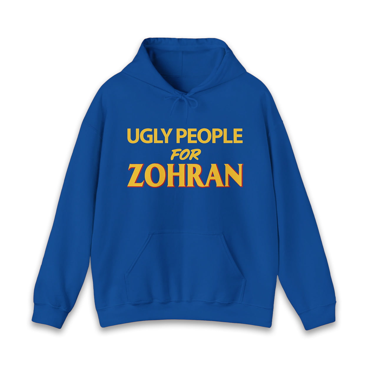 Show your support with a dose of humor with this “Ugly People For Zohran” T-Shirt. This eye-catching royal blue garment features the slogan printed in the same bold, retro-inspired yellow and red 3D-effect font made famous by the campaign’s viral merchandise. It’s a clean, direct, and playful design that embraces self-deprecation while clearly stating your political allegiance.