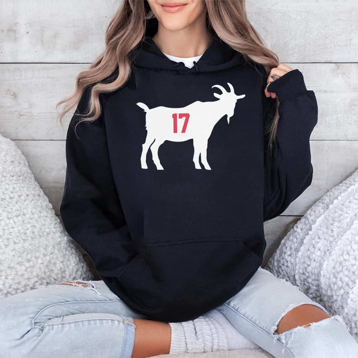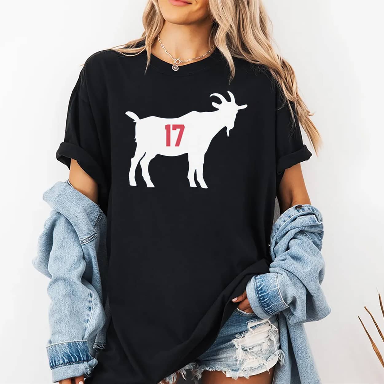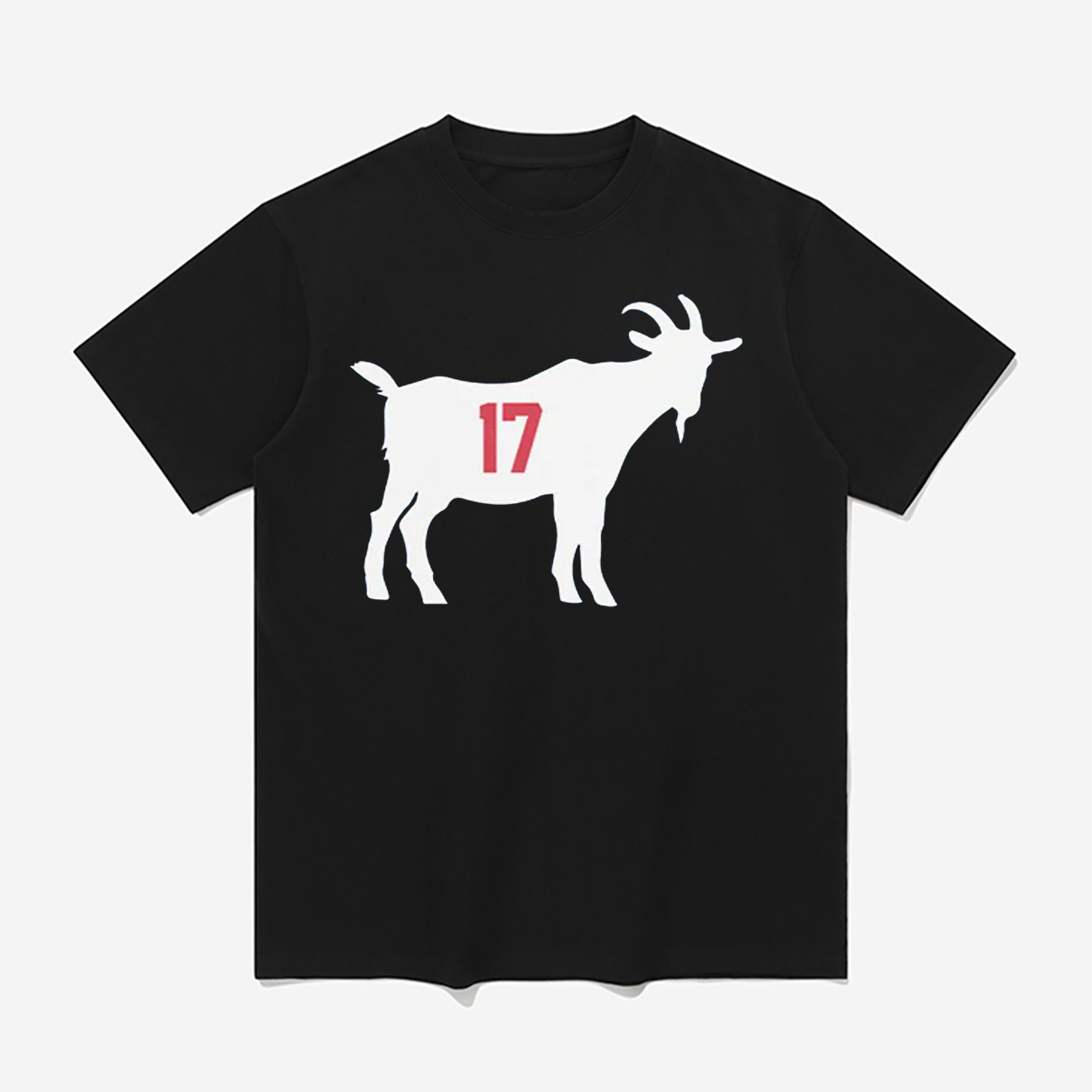 This t-shirt instantly became an iconic symbol during the 2025 World Series. The design is minimalist yet powerful: a clean white silhouette of a goat stands out against the premium black fabric. Centered on the goat’s side is the number “17” in a bold red font, making the reference clear and unmistakable.