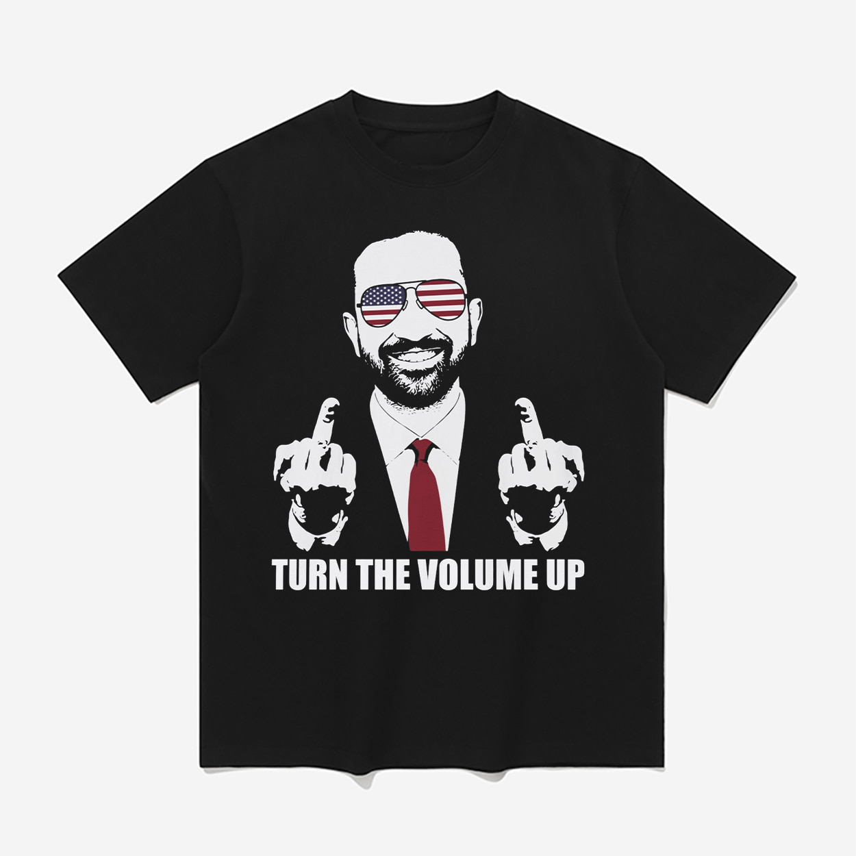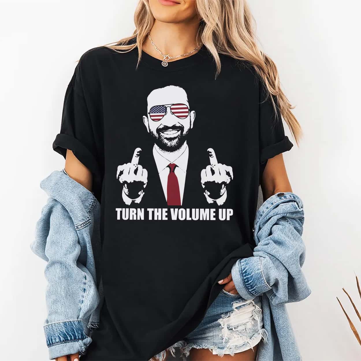 The Zohran Mamdani Turn The Volume Up Shirt embodies the fearless charisma of Zohran Mamdani’s movement. Featuring his image in a suit and red tie with American flag sunglasses and bold “TURN THE VOLUME UP” text, this tee symbolizes confidence and activism.
